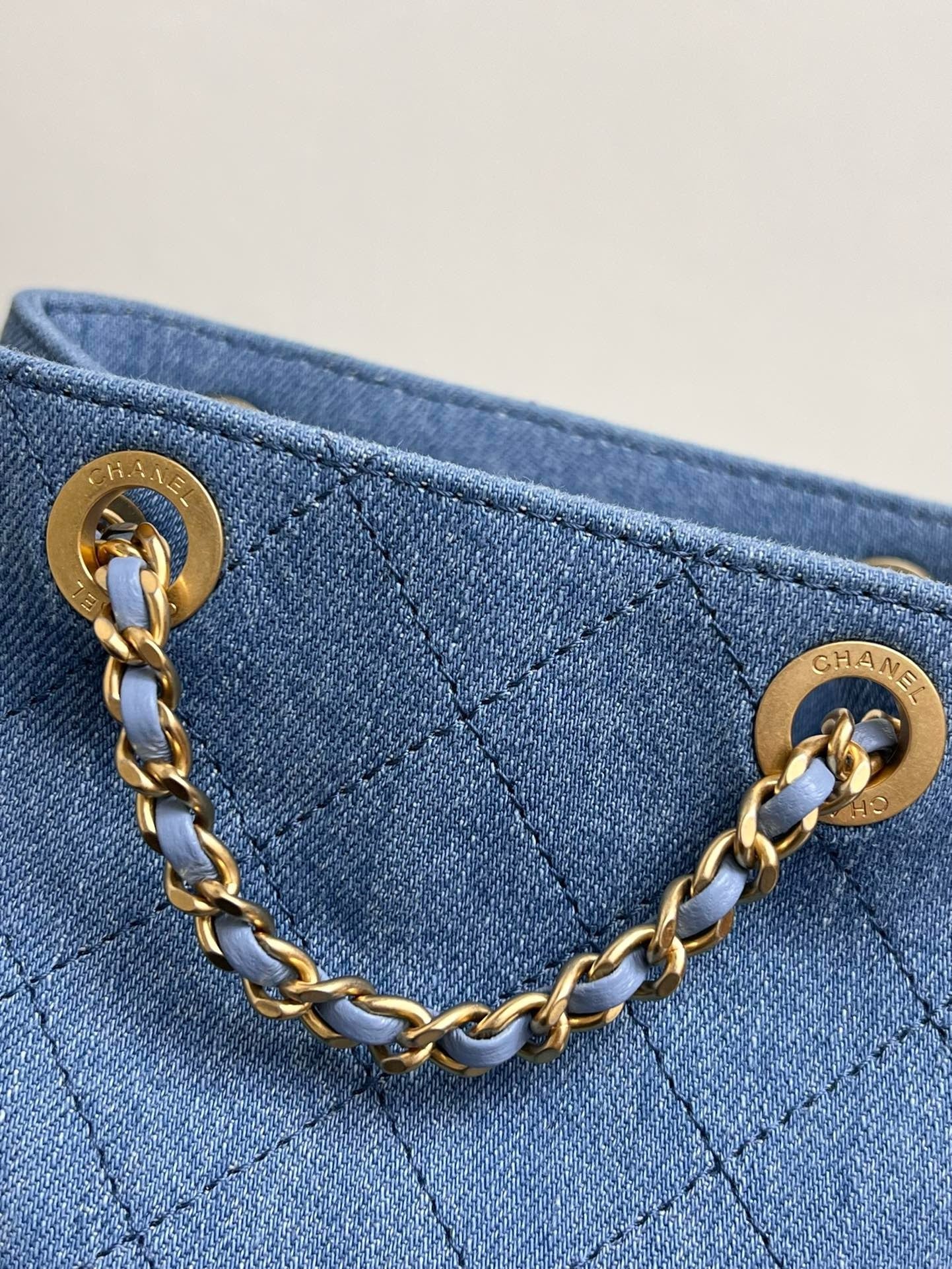 Shiny Lambskin/Washed Denim & Gold-Tone Metal