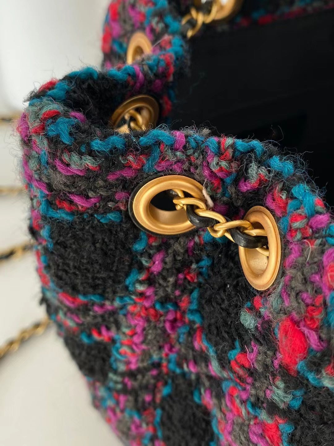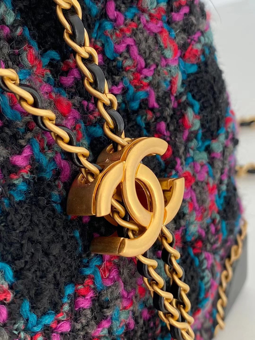 Wool Tweed & Calfskin & Gold-Tone Metal