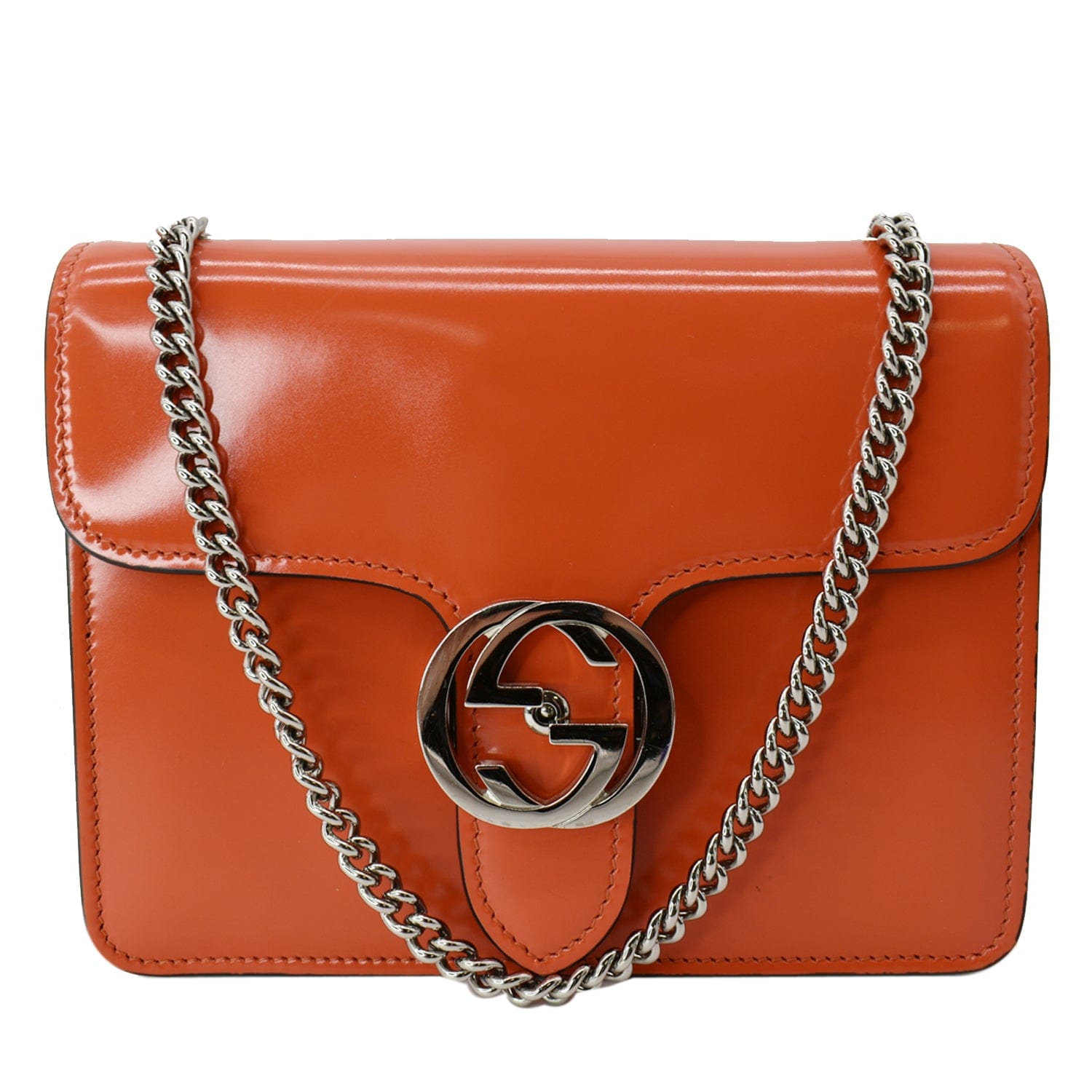 GUCCI Interlocking G Closure Leather Shoulder Bag Orange