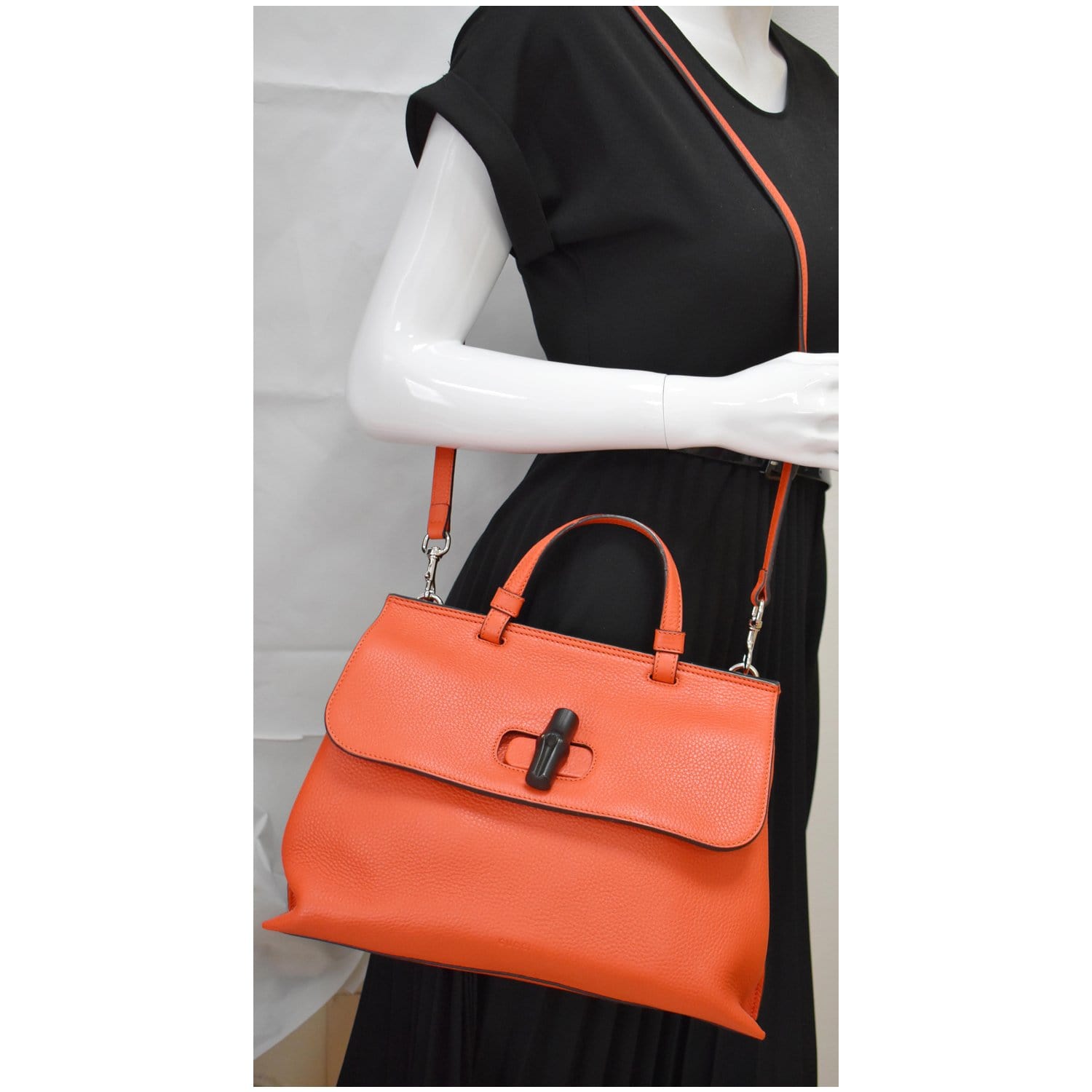 GUCCI Bamboo Daily Medium Leather Shoulder Bag Orange 392013