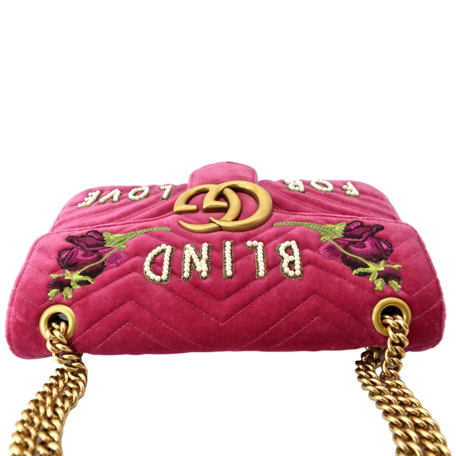 GUCCI Blind For Love Marmont Embroidered Velvet Shoulder Bag Red 443496