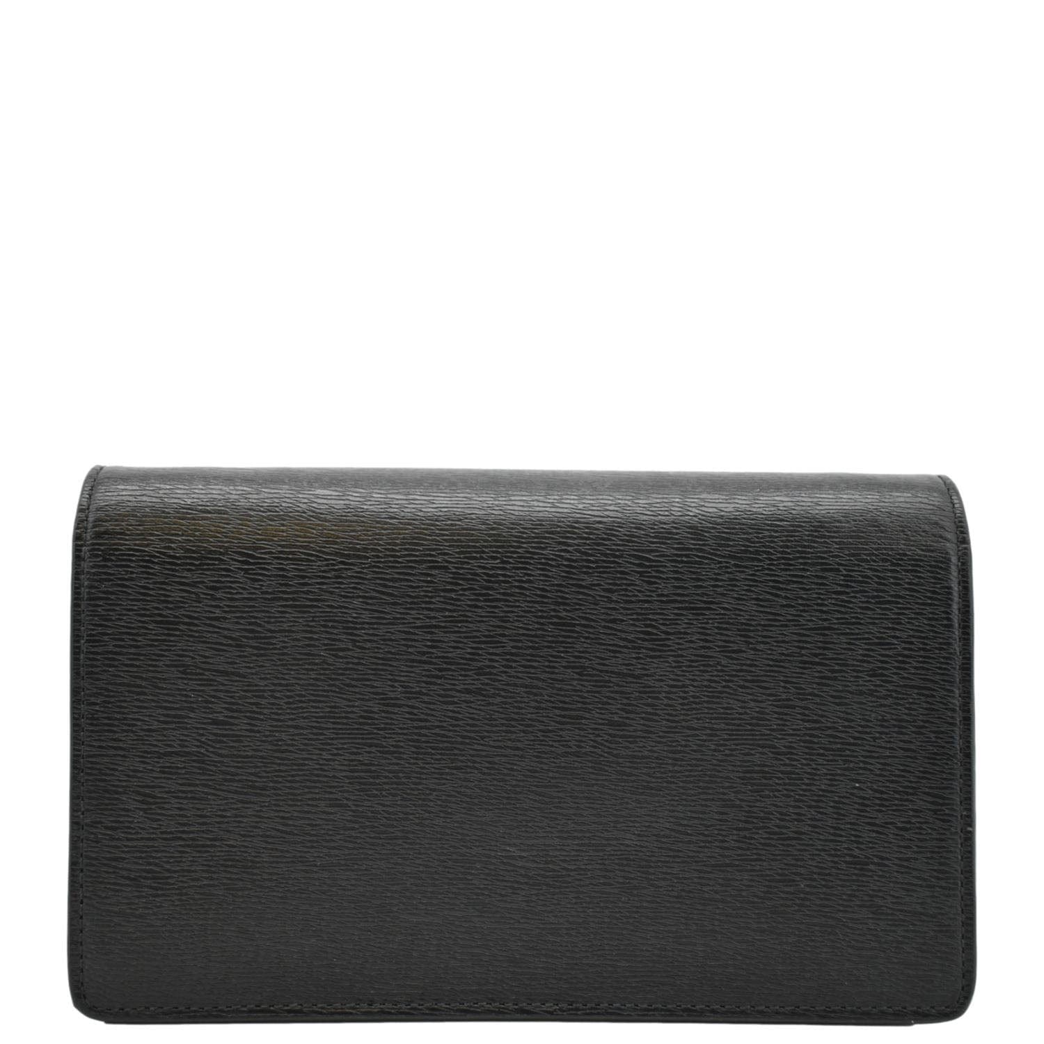 GUCCI Script Leather Chain Wallet Crossbody Bag Black 772643