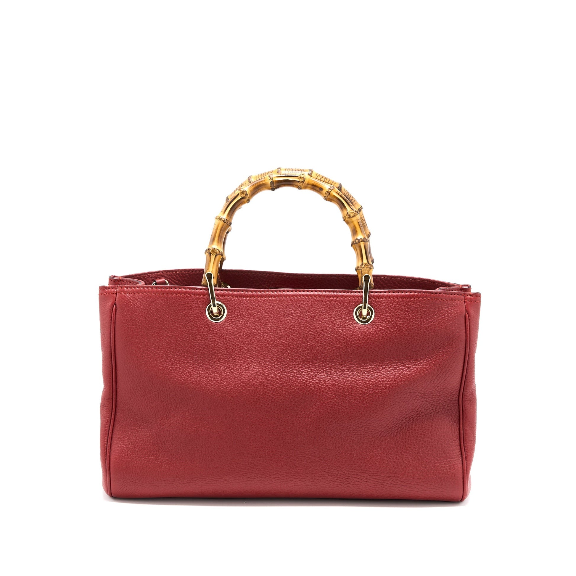 Gucci Crossbody Tote Bag Bamboo Handle Calfskin Red L