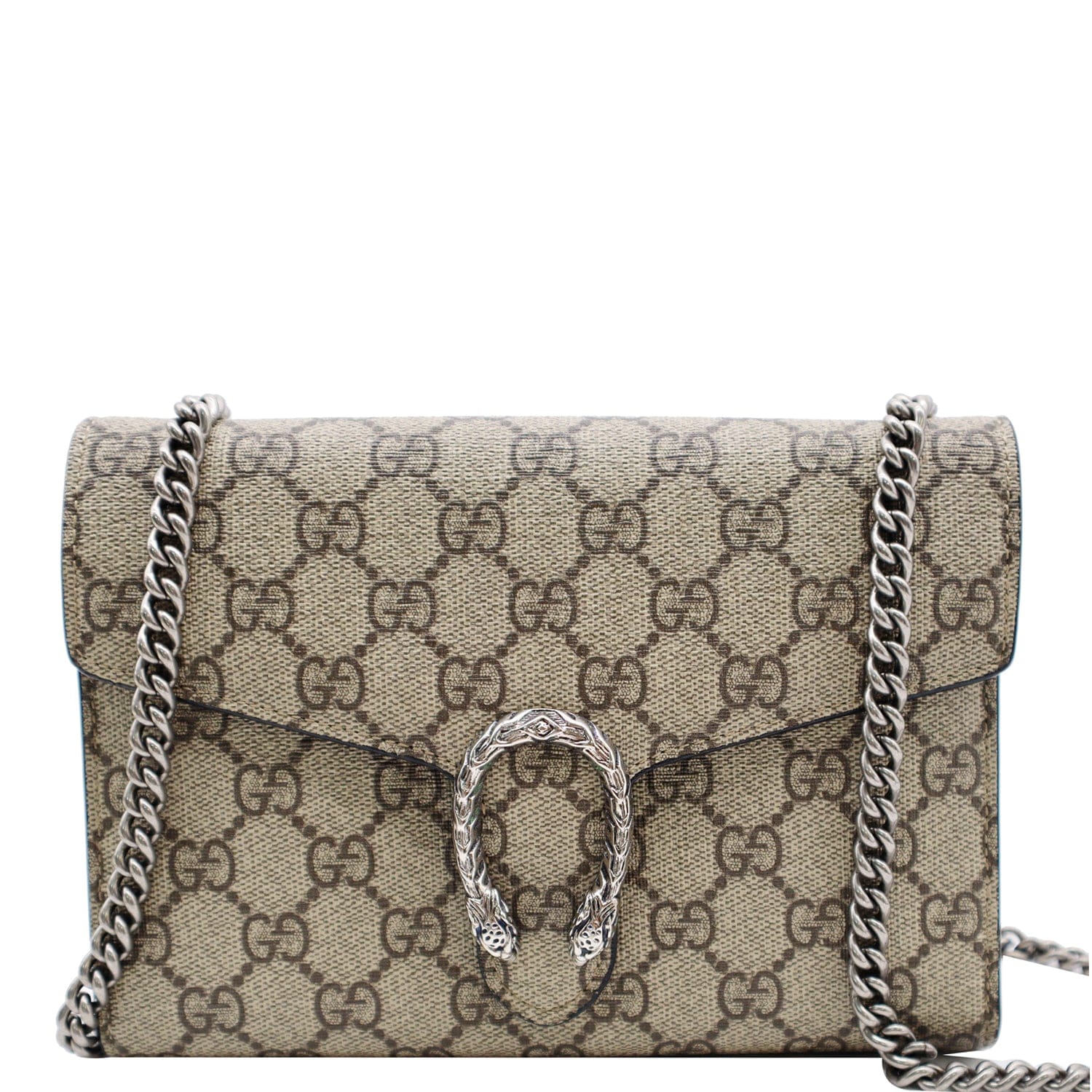 Gucci Dionysus GG Supreme Crossbody Chain Wallet Beige