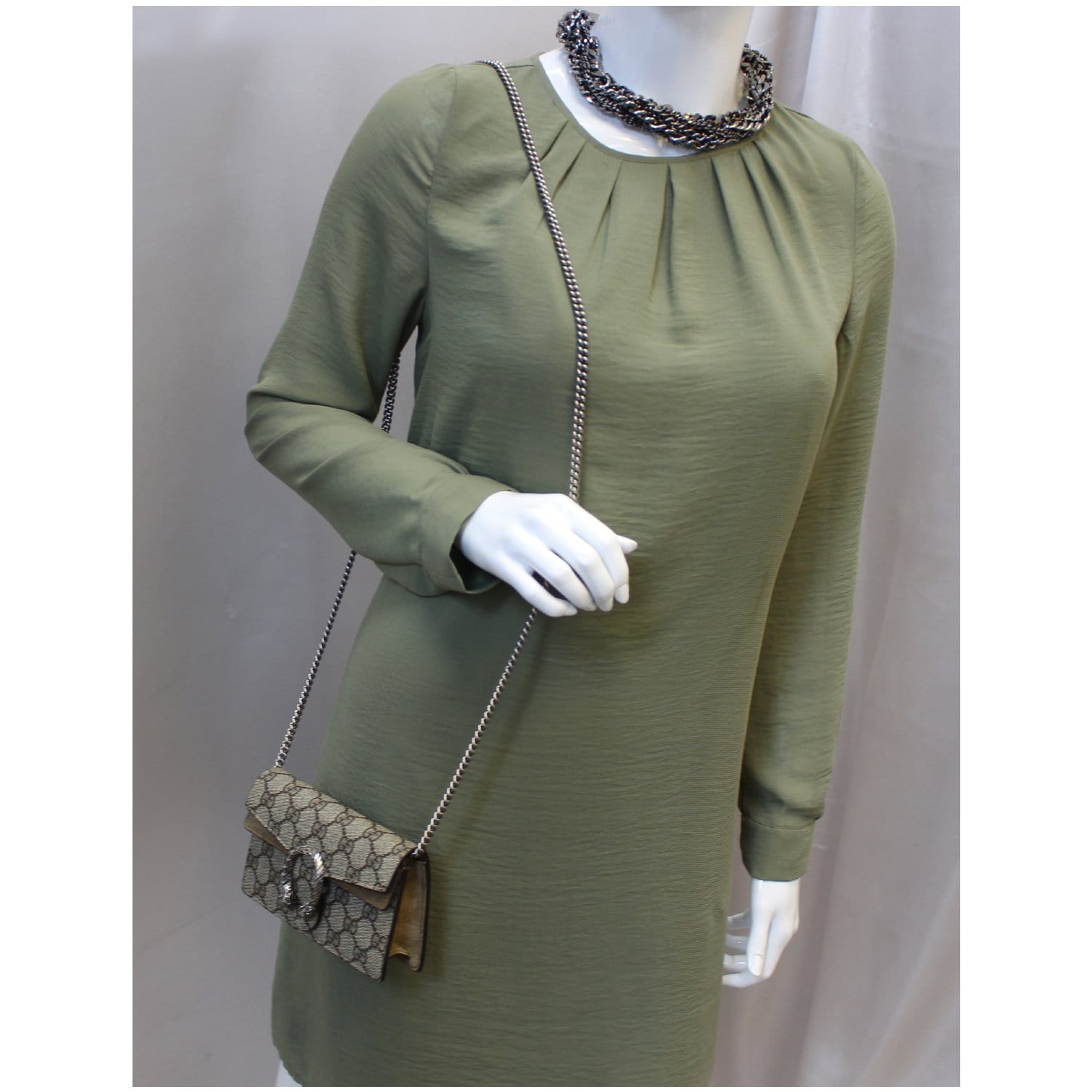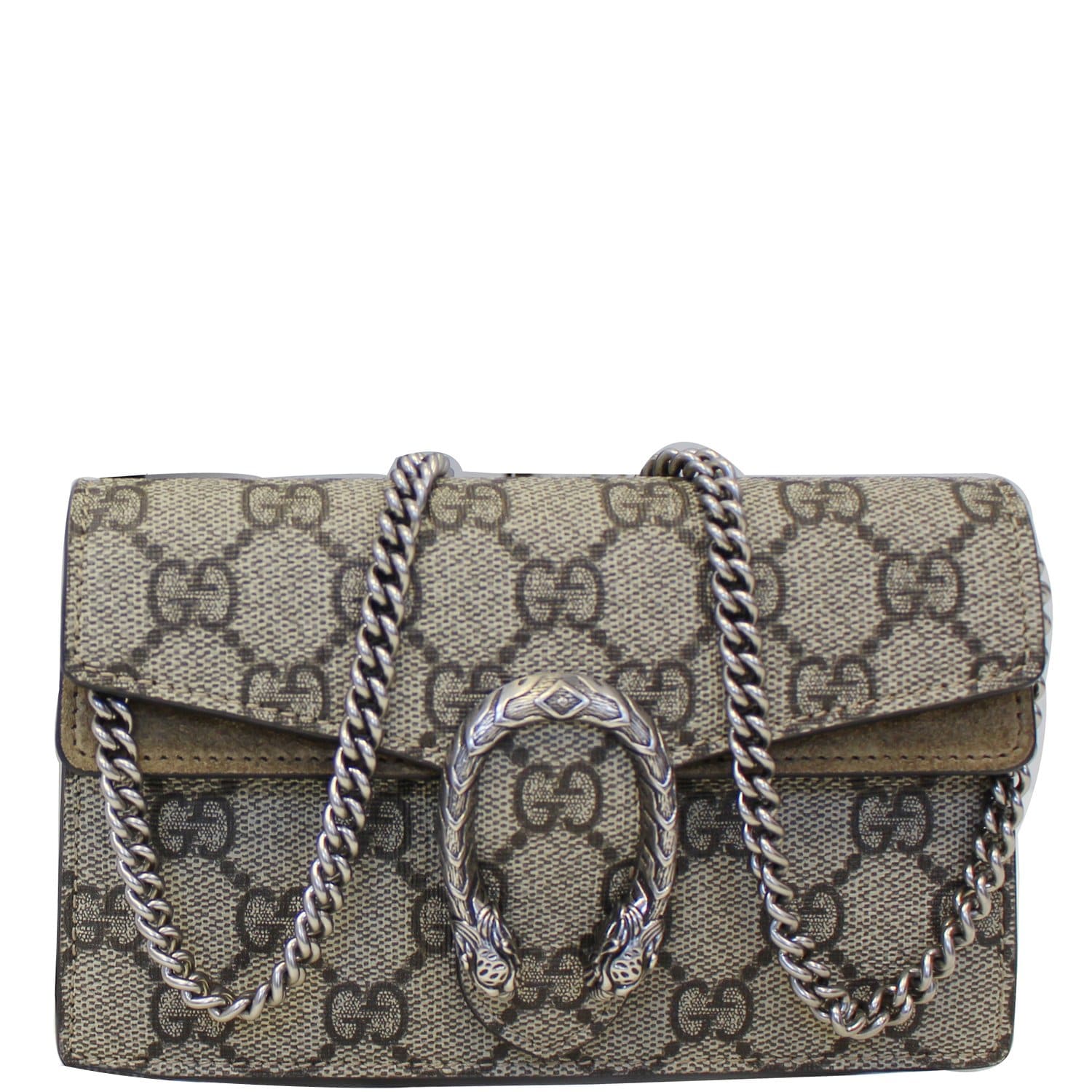 GUCCI Dionysus Super Mini GG Supreme Canvas Shoulder Crossbody Bag Taupe