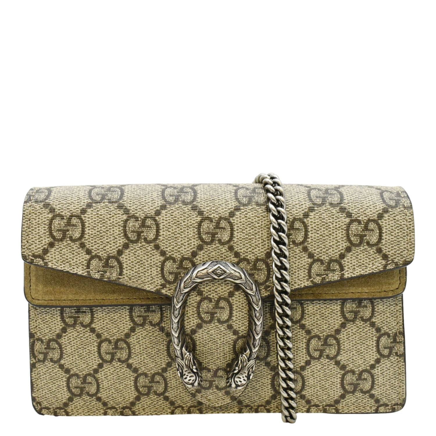 GUCCI Dionysus Super Mini GG Supreme Canvas Crossbody Bag Taupe