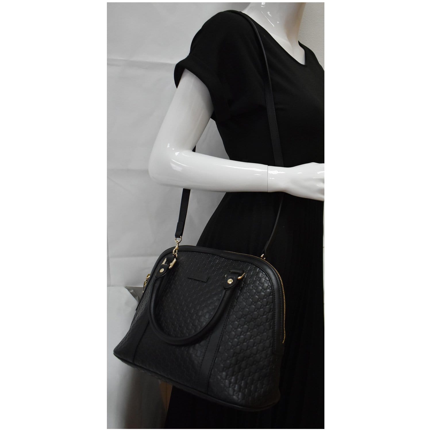 GUCCI Dome Medium Microguccissima Leather Shoulder Bag Black 449663