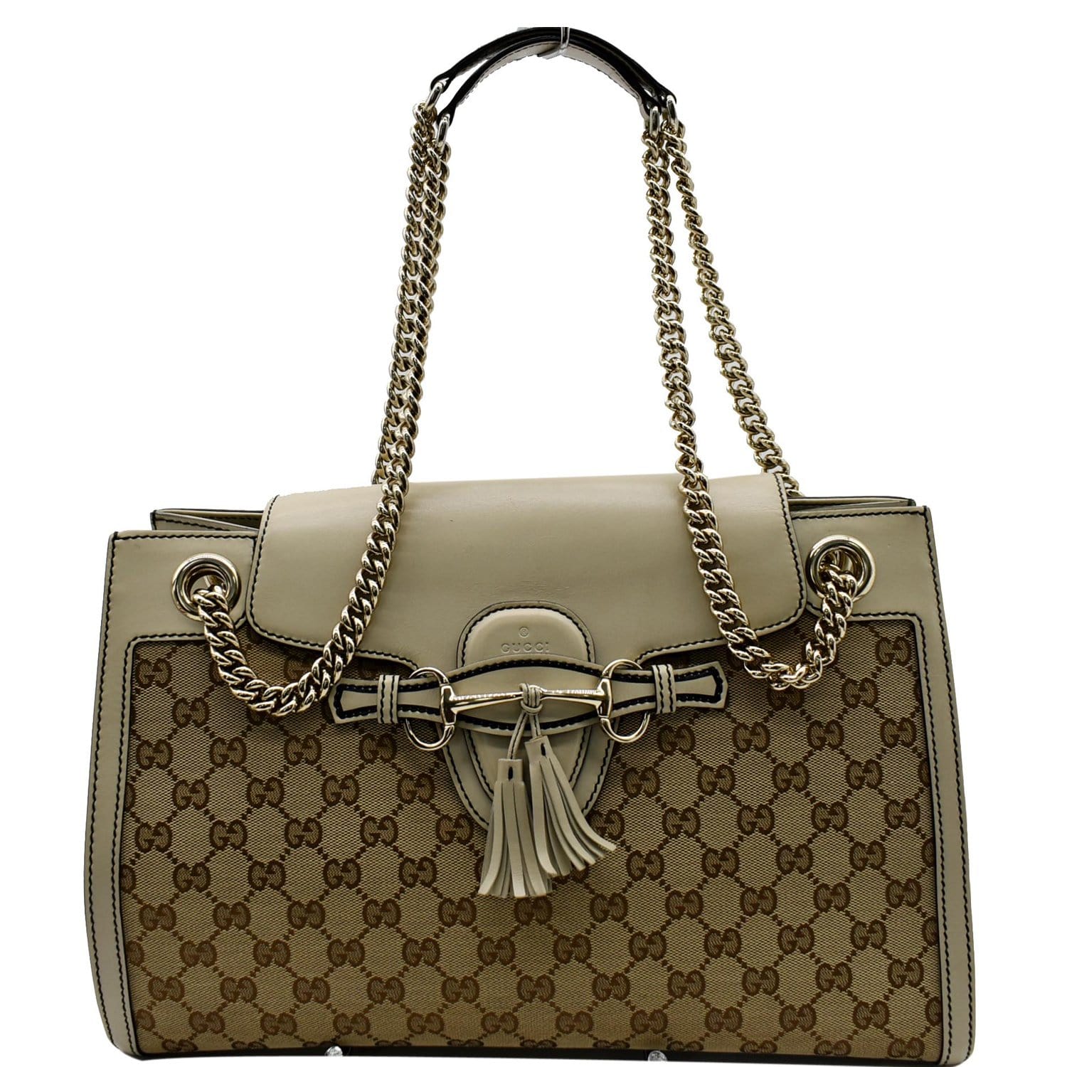 GUCCI Emily Large Guccissima Chain Shoulder Bag Beige 295403