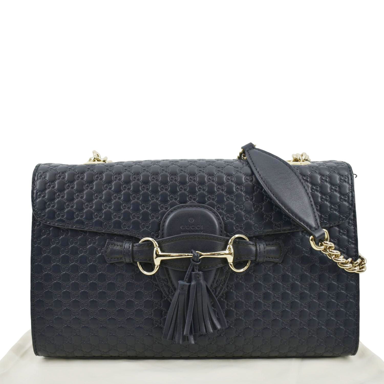 GUCCI Emily Medium GG Leather Chain Shoulder Bag Navy Blue 449635