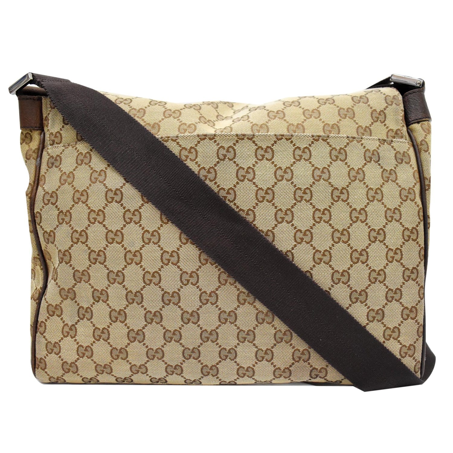 GUCCI Flap Top GG Canvas Messenger Crossbody Bag Beige 145861