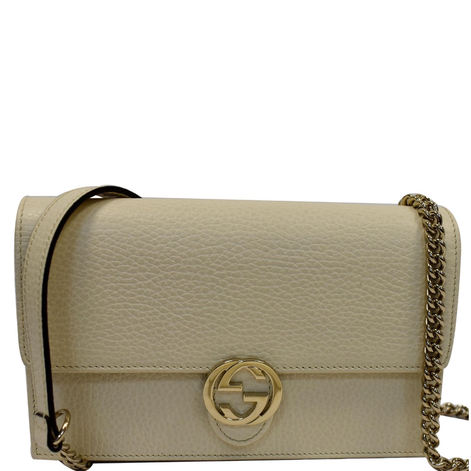 GUCCI GG Interlocking Pebbled Leather Crossbody Bag Ivory 615523