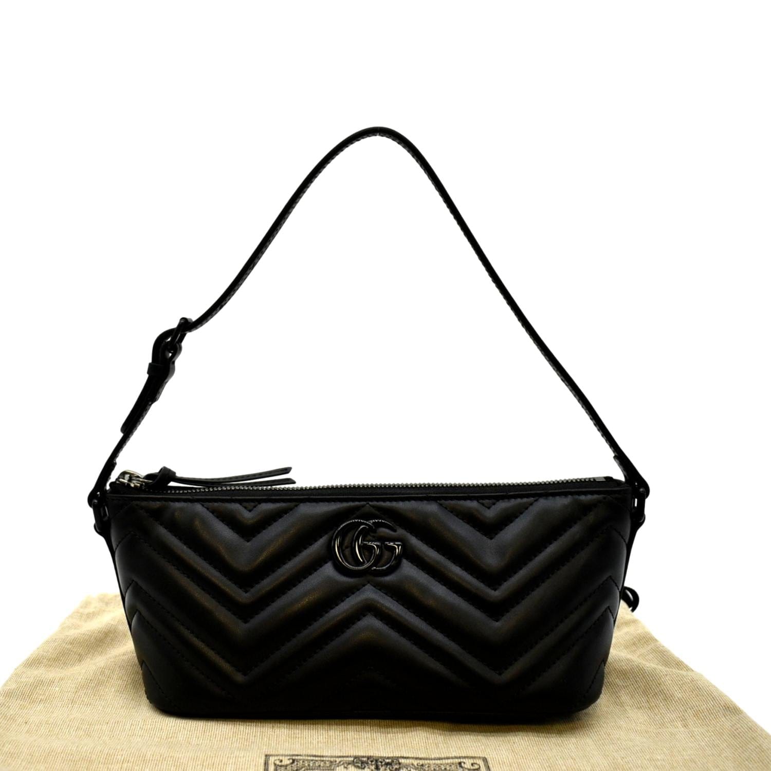 GUCCI GG Marmont Matelasse Chevron Leather Shoulder Bag Black 739166