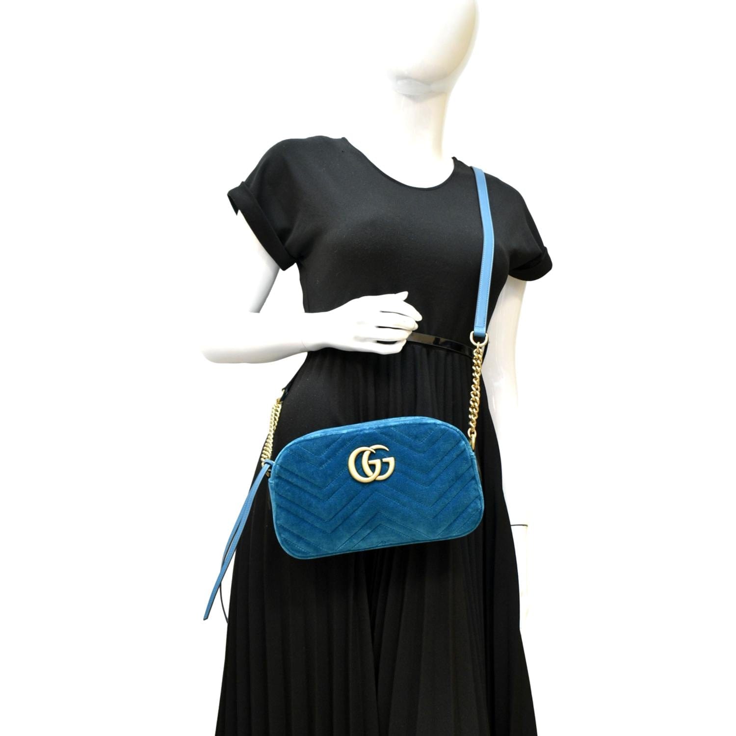 GUCCI Marmont Small Suede Crossbody Camera Bag Teal 447632