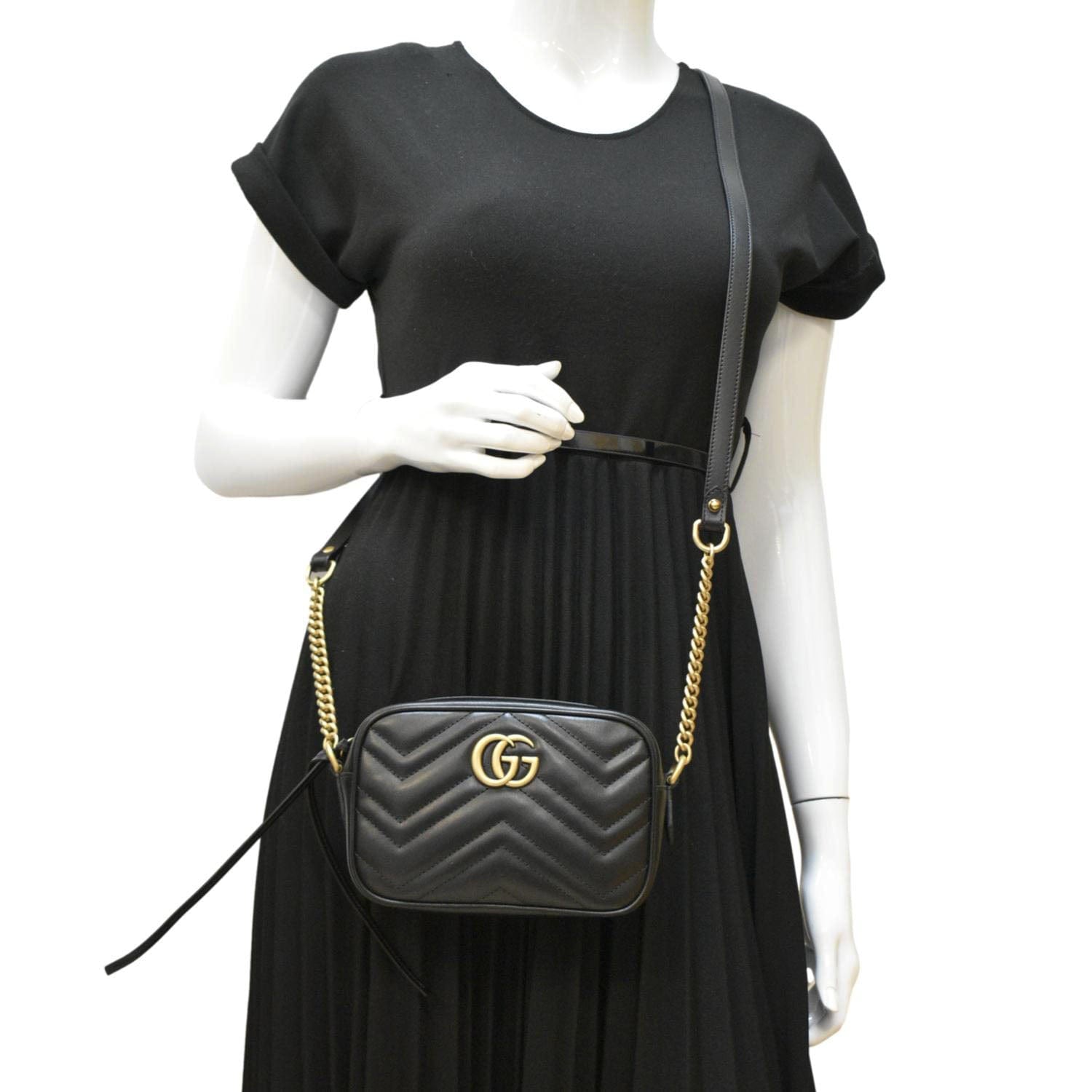 GUCCI Matelasse GG Marmont Mini Crossbody Black Camera Bag