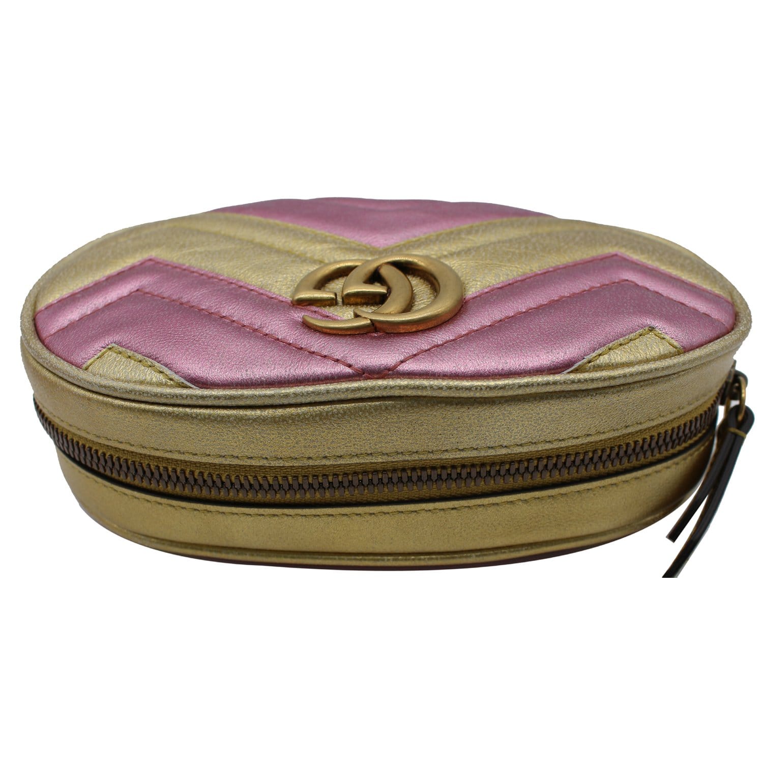 GUCCI GG Marmont Matelasse Metallic Calfskin Leather Belt Bag Gold Pink 476434 - 10% OFF