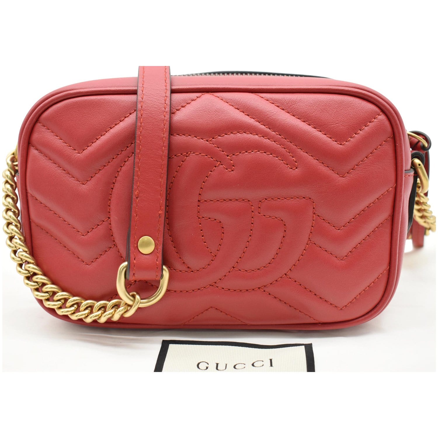 GUCCI GG Marmont Matelasse Mini Leather Crossbody Bag Red