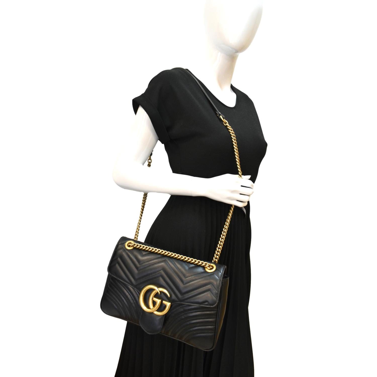 GUCCI GG Marmont Medium Matelasse Shoulder Bag Black 443496