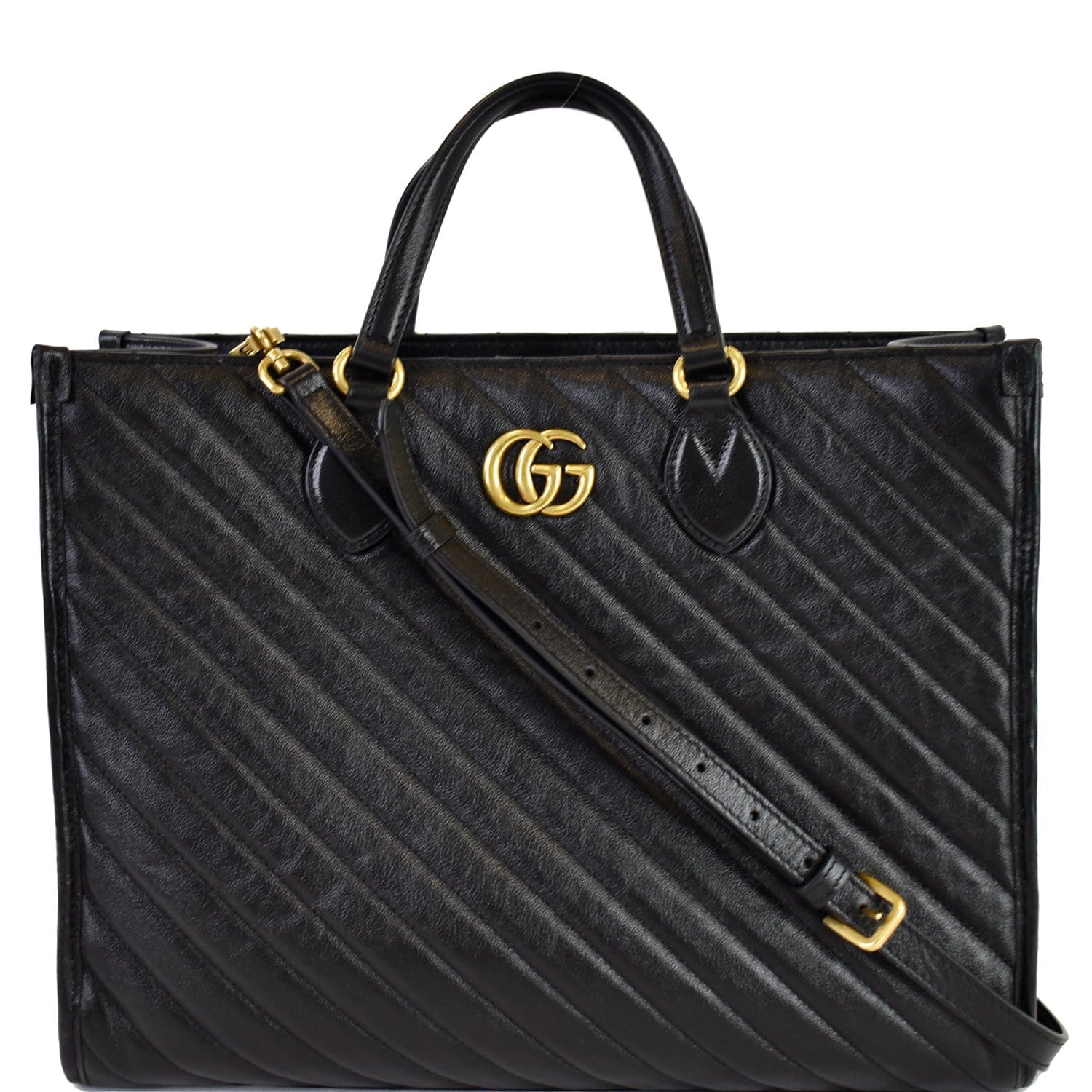 GUCCI GG Marmont Medium Matelasse Leather Tote Bag Black 627332