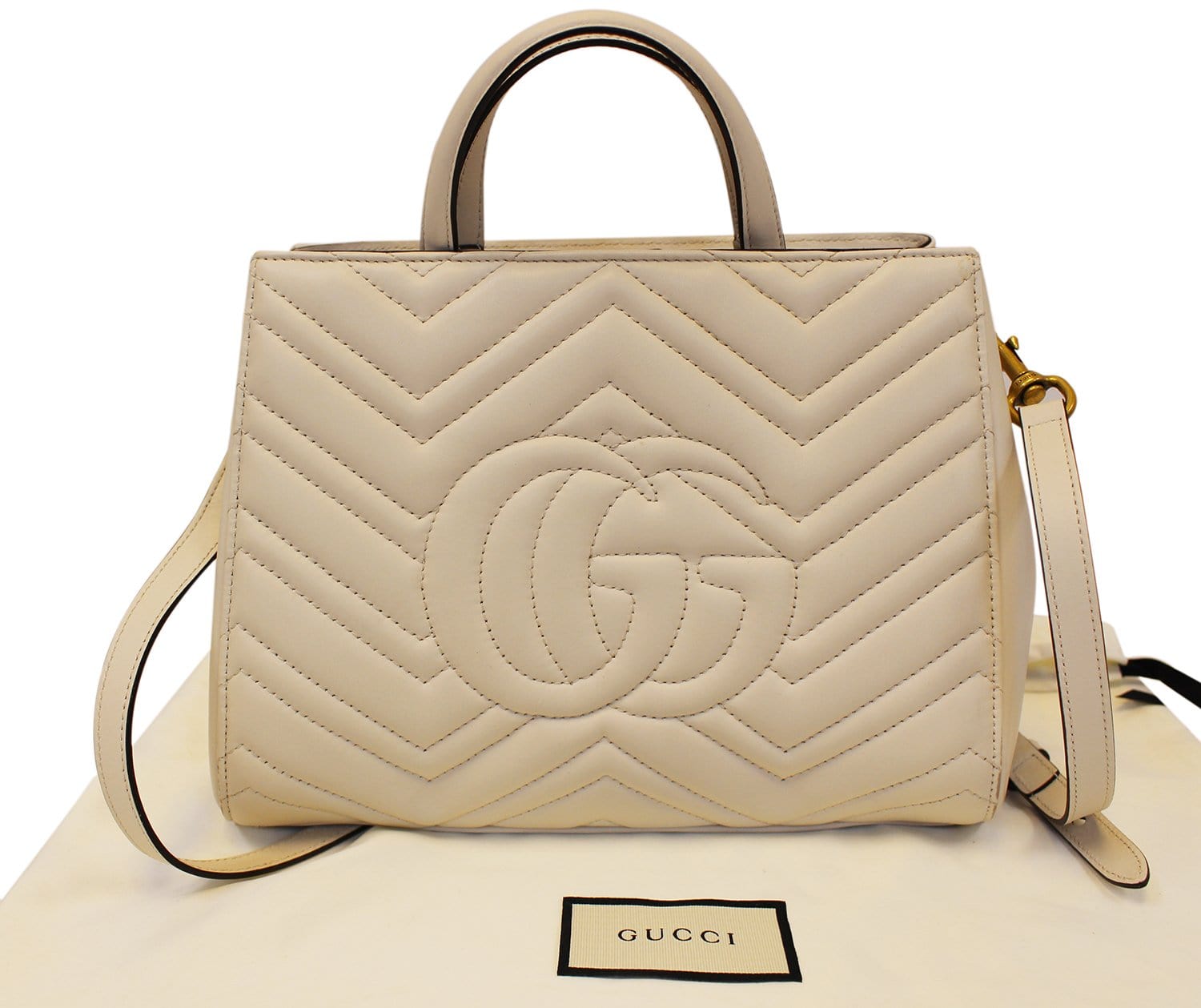 GUCCI GG Marmont small Matelass� Top Handle White Tote Bag 448054