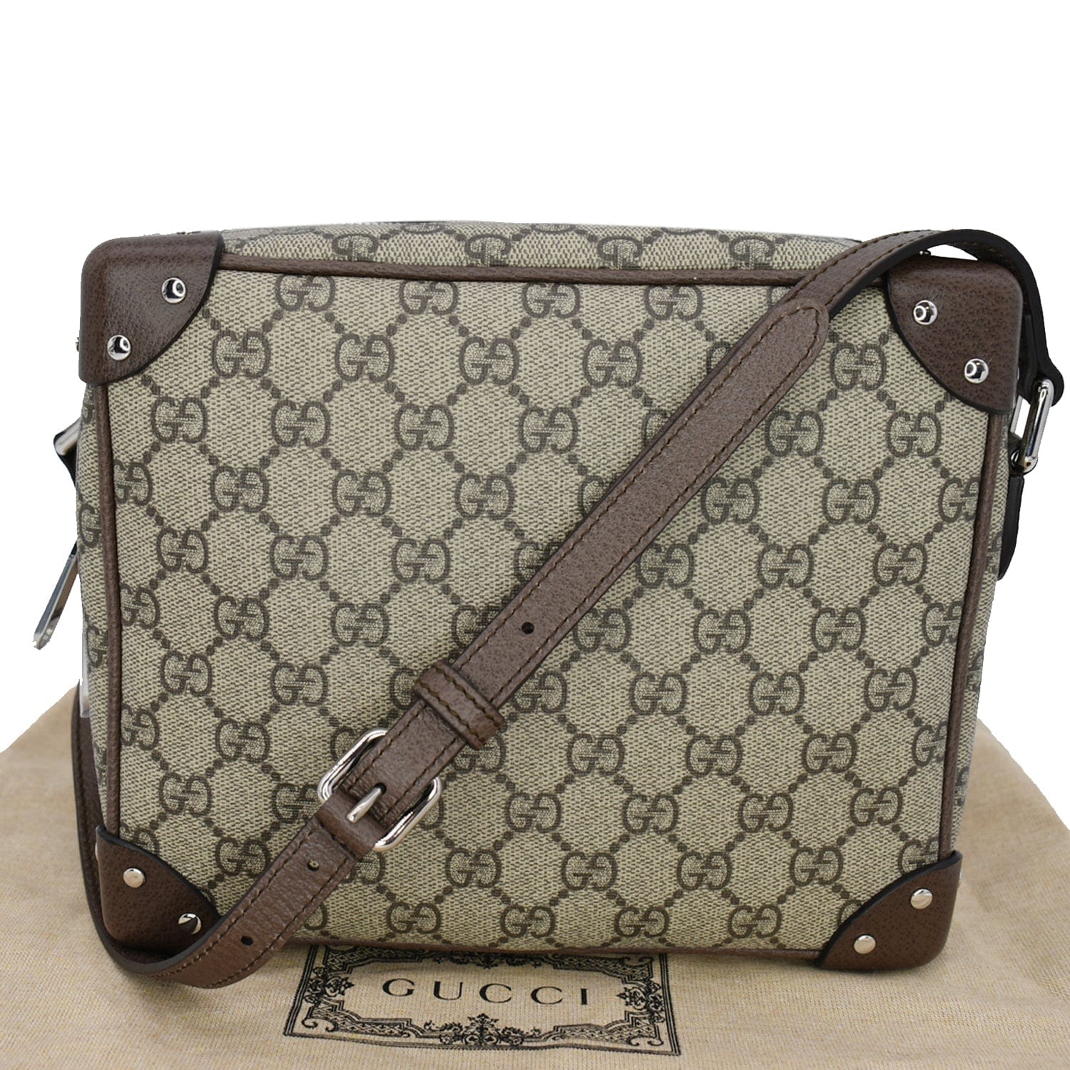 - Material: GG Monogram Canvas with Brown Leather