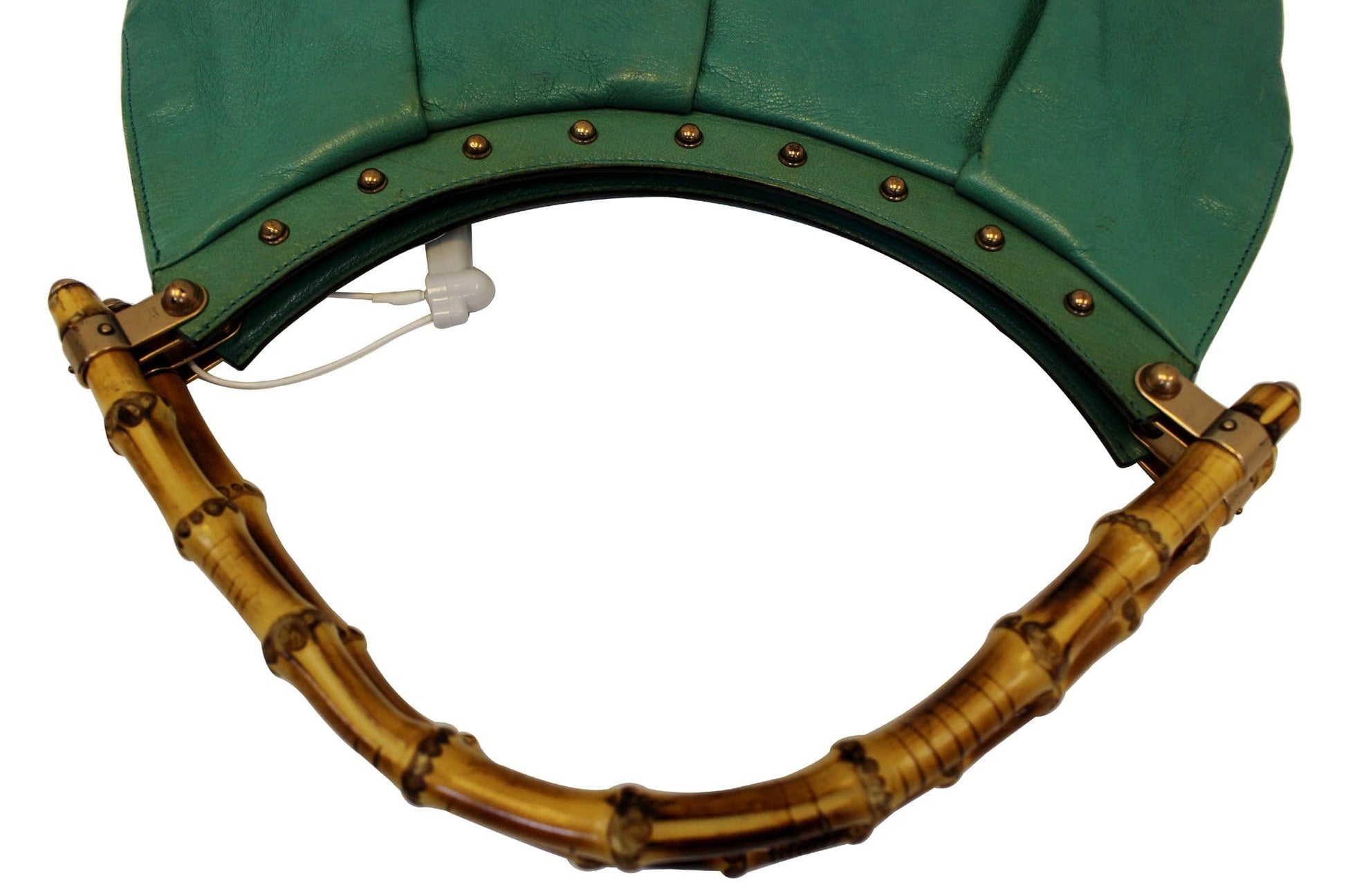 GUCCI Green Leather Bamboo Top Handle Shoulder Bag