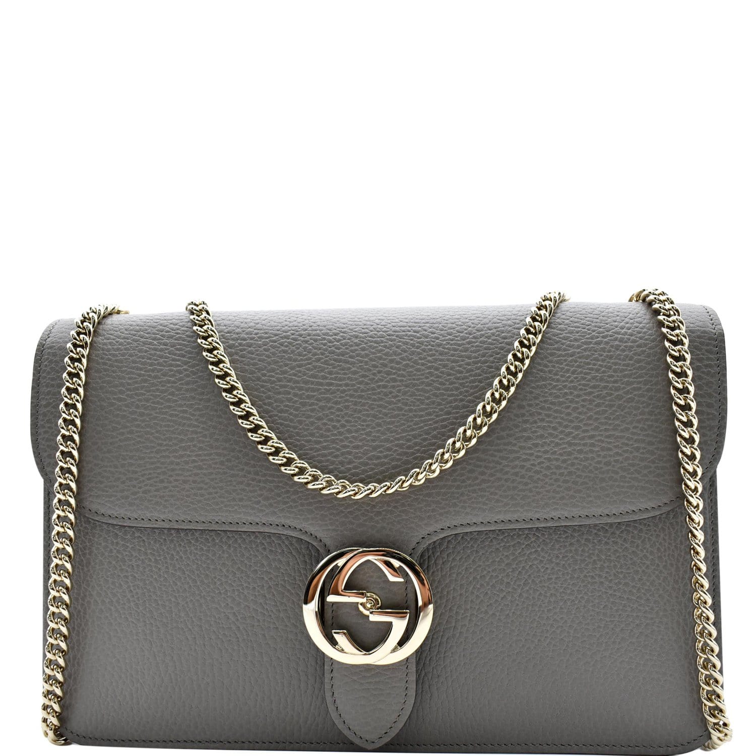 GUCCI Interlocking GG Calfskin Leather Crossbody Bag Grey 510303