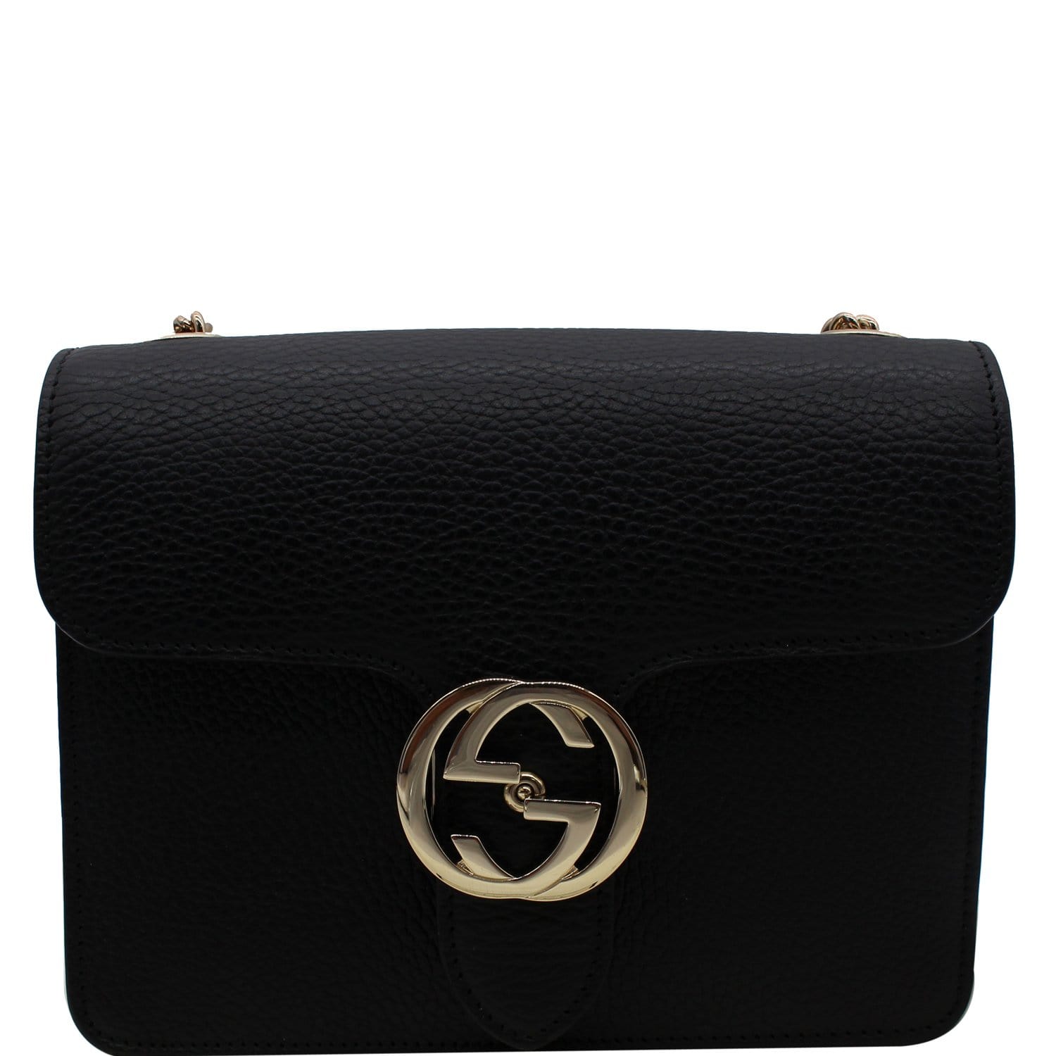 GUCCI Interlocking GG Leather Crossbody Bag Black