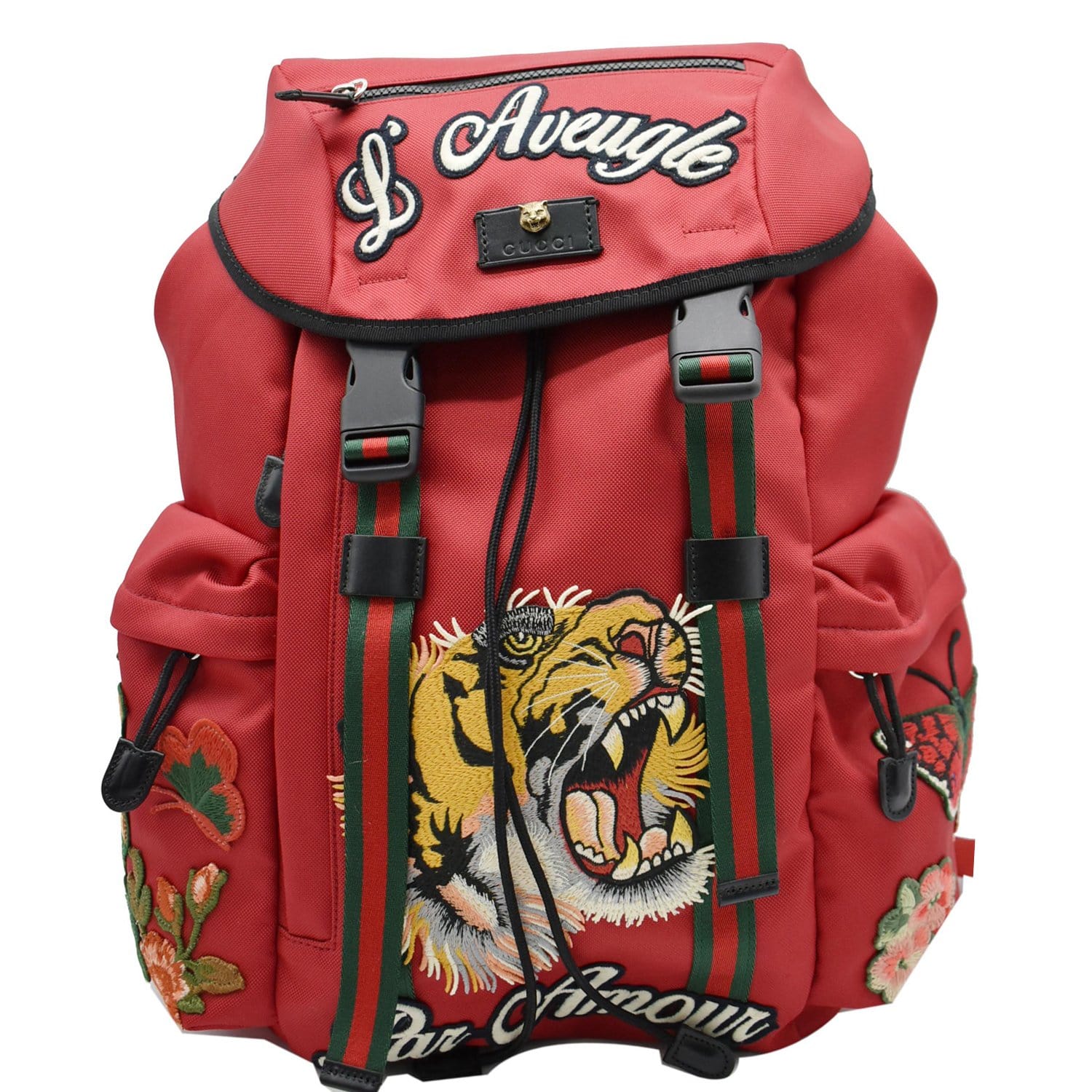 GUCCI L'Aveugle Par Amour Embroidered Nylon Double Buckle Backpack Red 429037