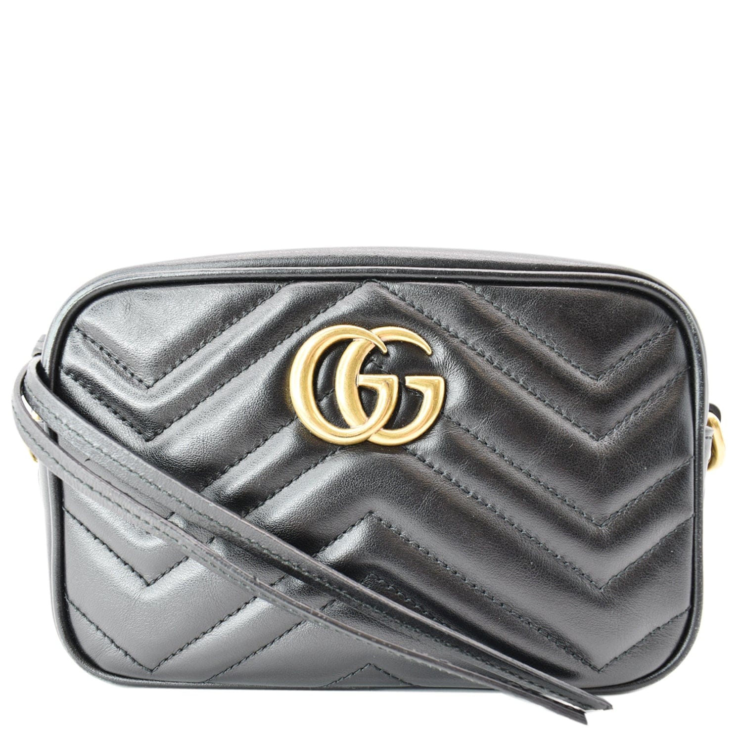 GUCCI GG Marmont Matelasse Mini Leather Crossbody Bag Black 448065