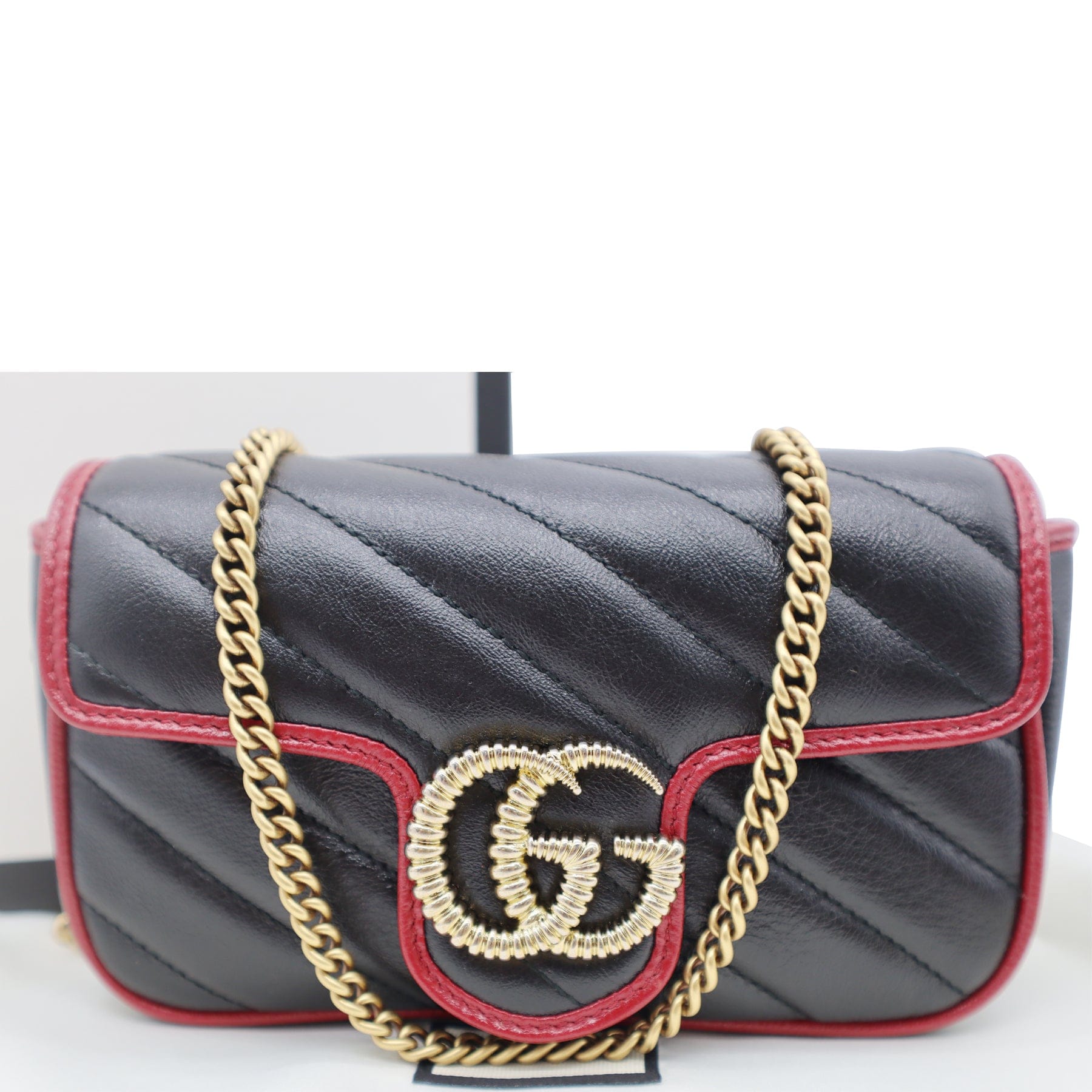 GUCCI GG Marmont Mini Matelass� Leather Shoulder Crossbody Bag Black/Cerise 574969