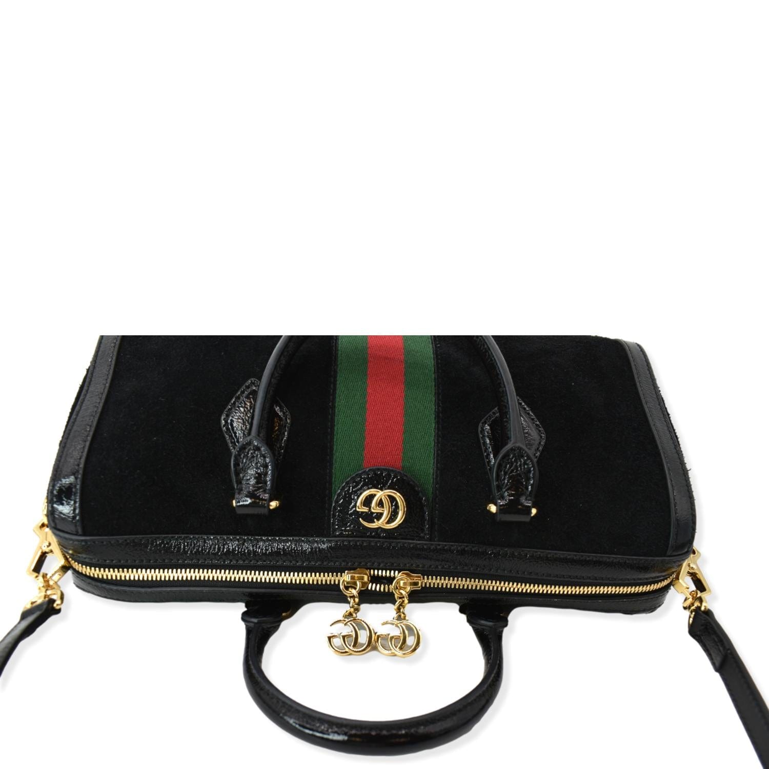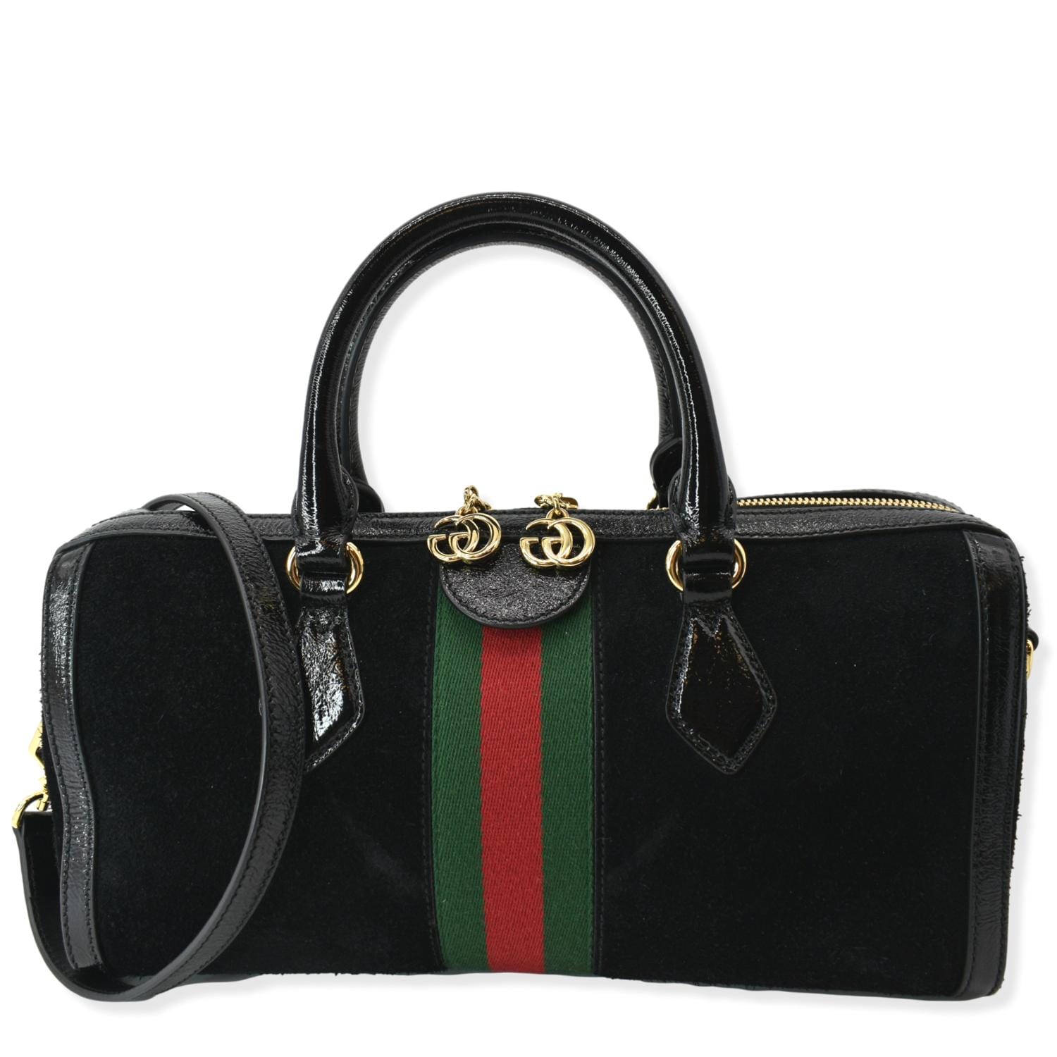GUCCI Ophidia GG Suede Web Top Handle Shoulder Bag Black 524532