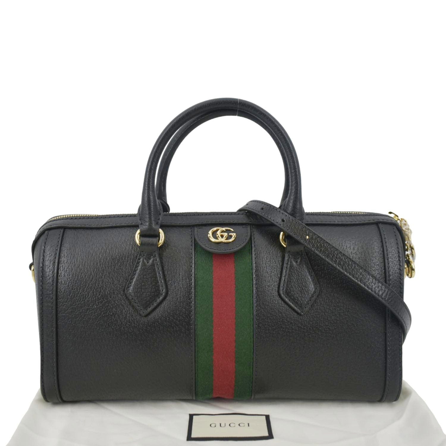 GUCCI Ophidia GG Web Leather Top Handle Shoulder Bag Black 524532