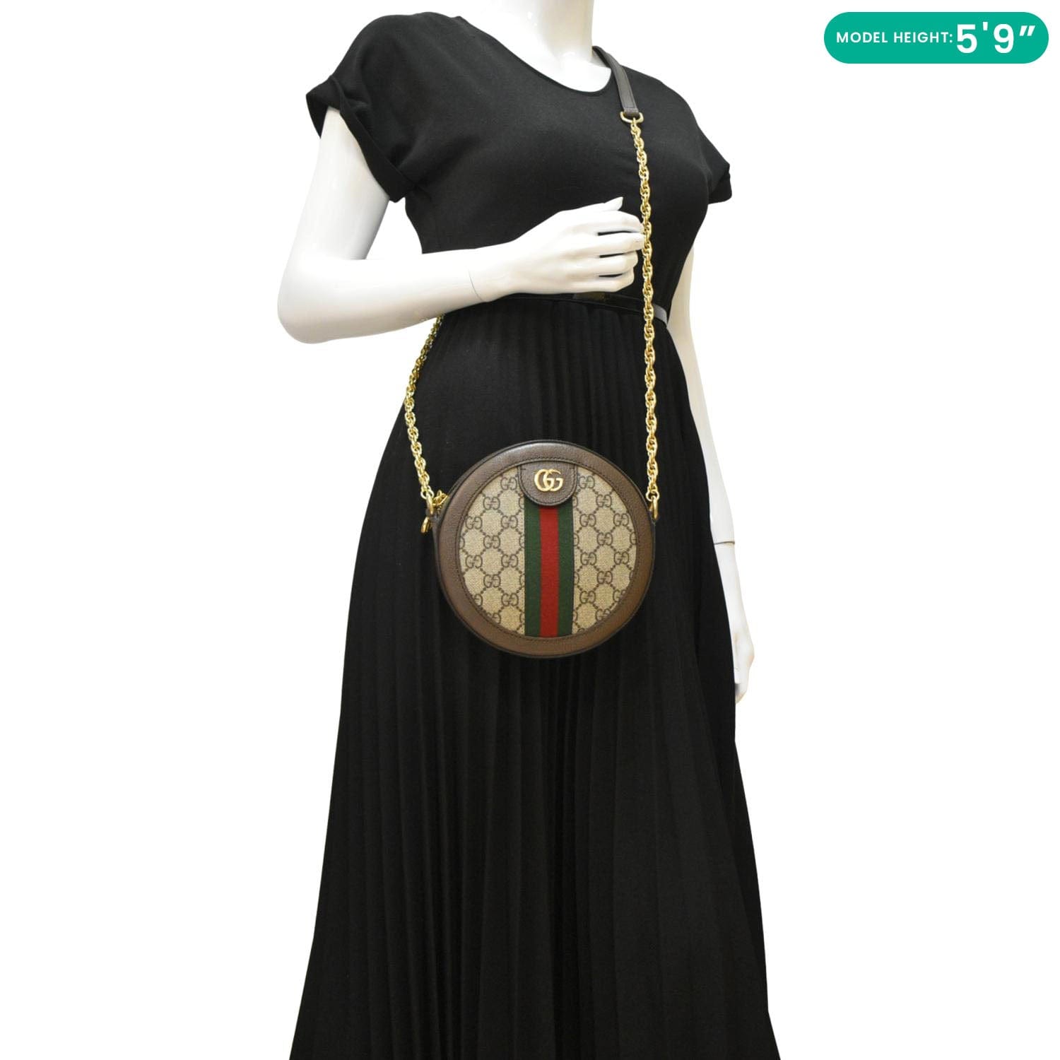 GUCCI Ophidia Mini GG Round Supreme Monogram Web Crossbody Bag Beige 550618