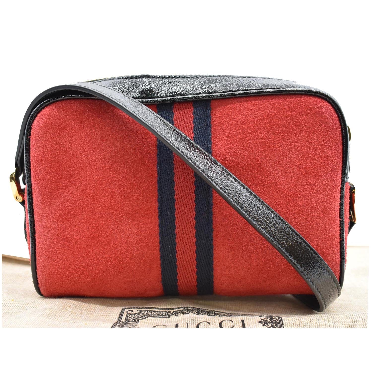 GUCCI Ophidia Mini Web Suede Leather Crossbody Bag Red 517350