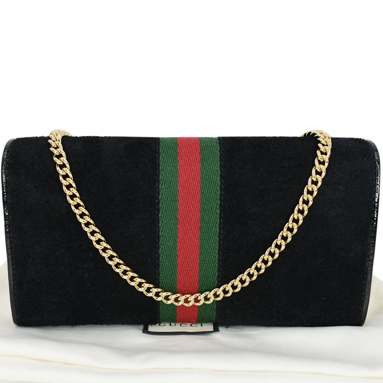 Gucci Ophidia Suede Patent Web Leather Wallet On Chain Crossbody Bag Black