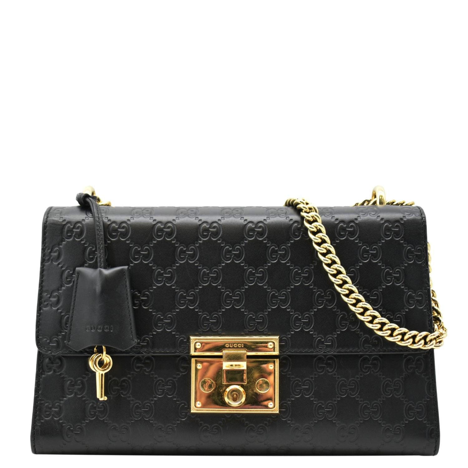 GUCCI Padlock Medium GG Leathrer Chain Shoulder Bag Black 409486