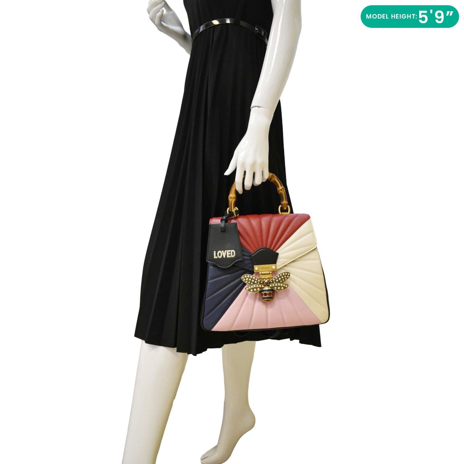 Elevate your style with the GUCCI Queen Margaret Quilted Leather Bee Backpack Bag in a vibrant multi-color design. Its luxurious quilted leather and iconic bee embellishment make it a statement piece for any fashion enthusiast.