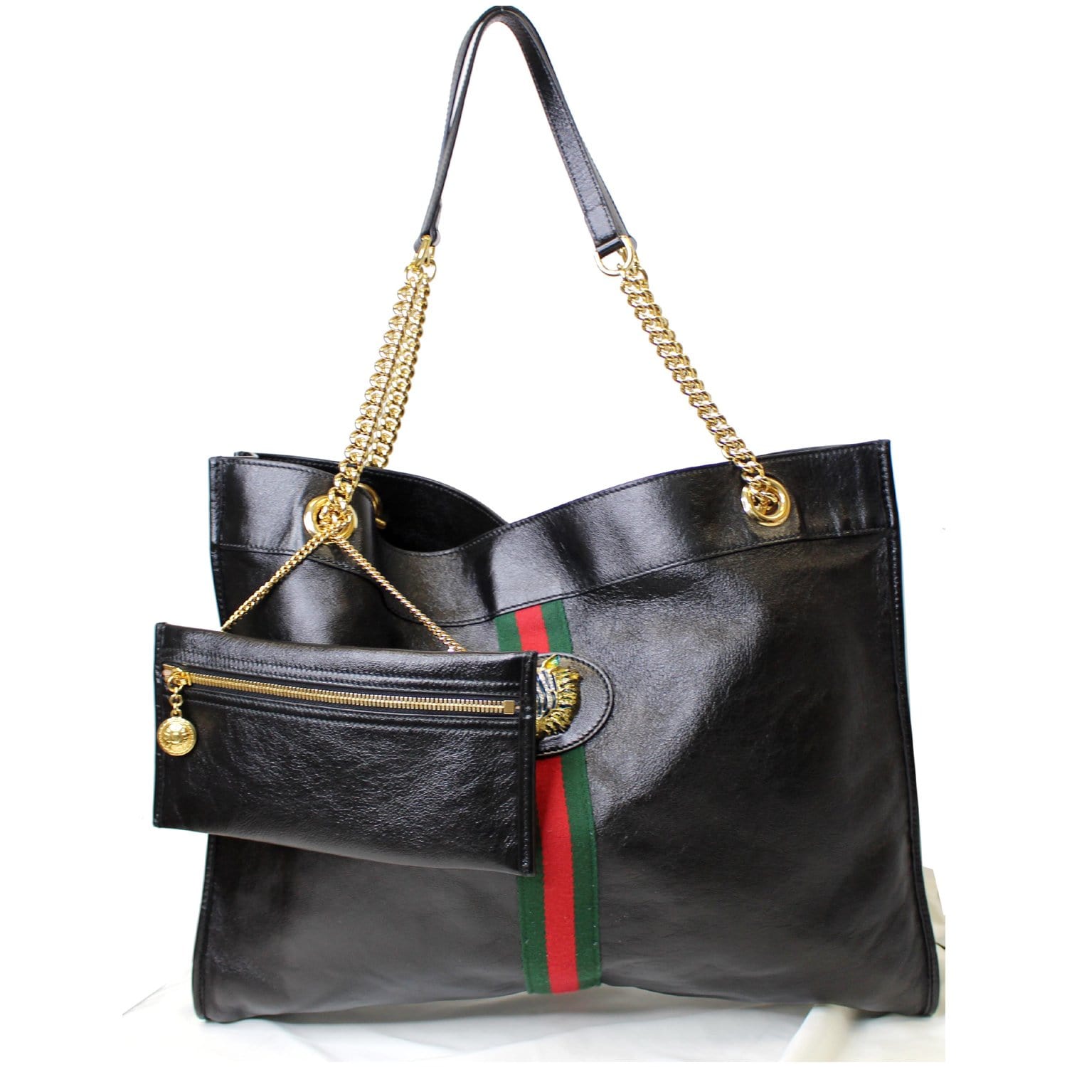 GUCCI Rajah Large Leather Tote Shoulder Bag Black 537219