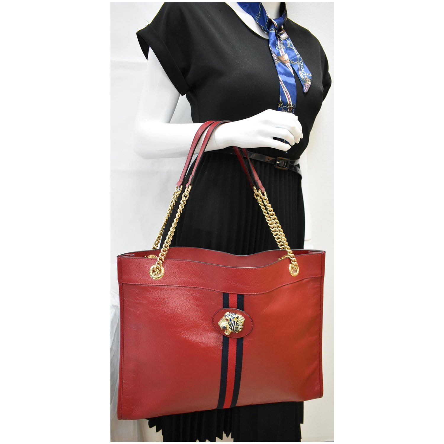 GUCCI Rajah Large Leather Tote Shoulder Bag Red 537219