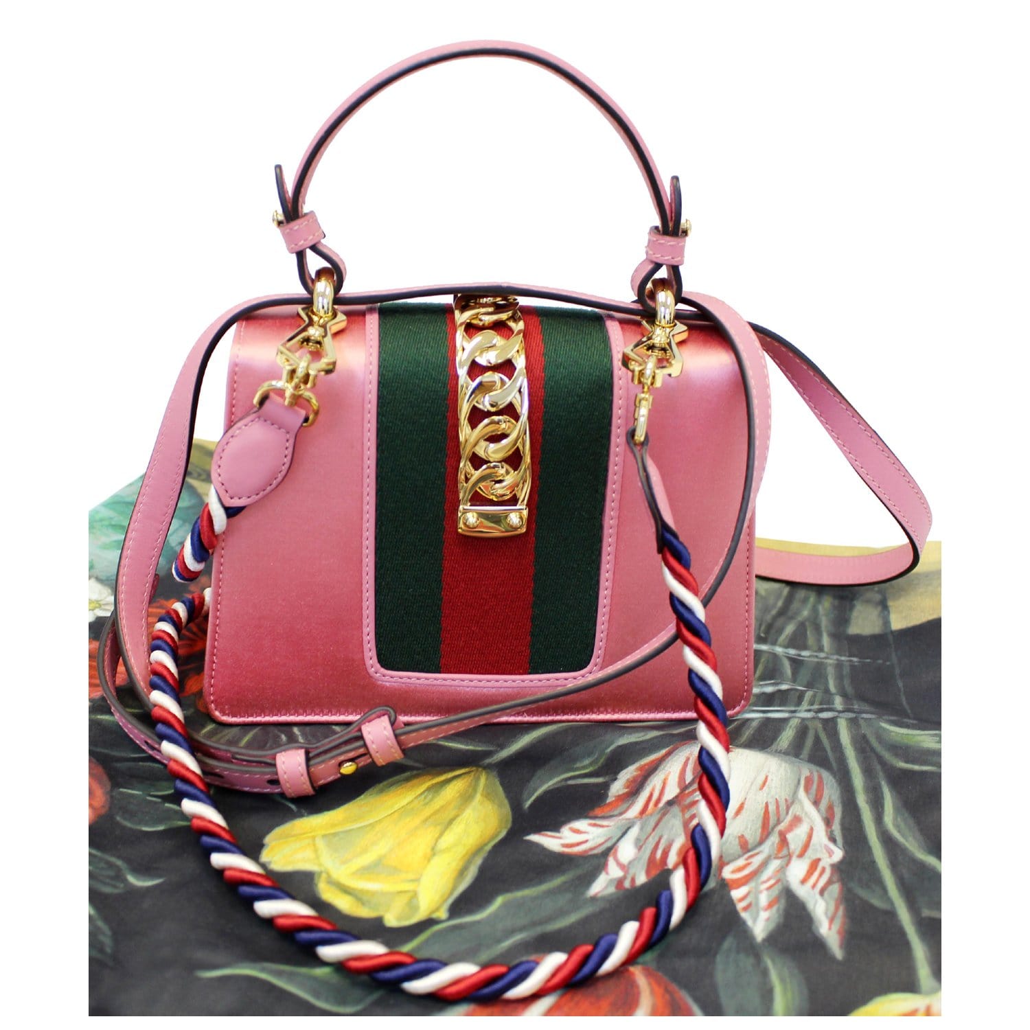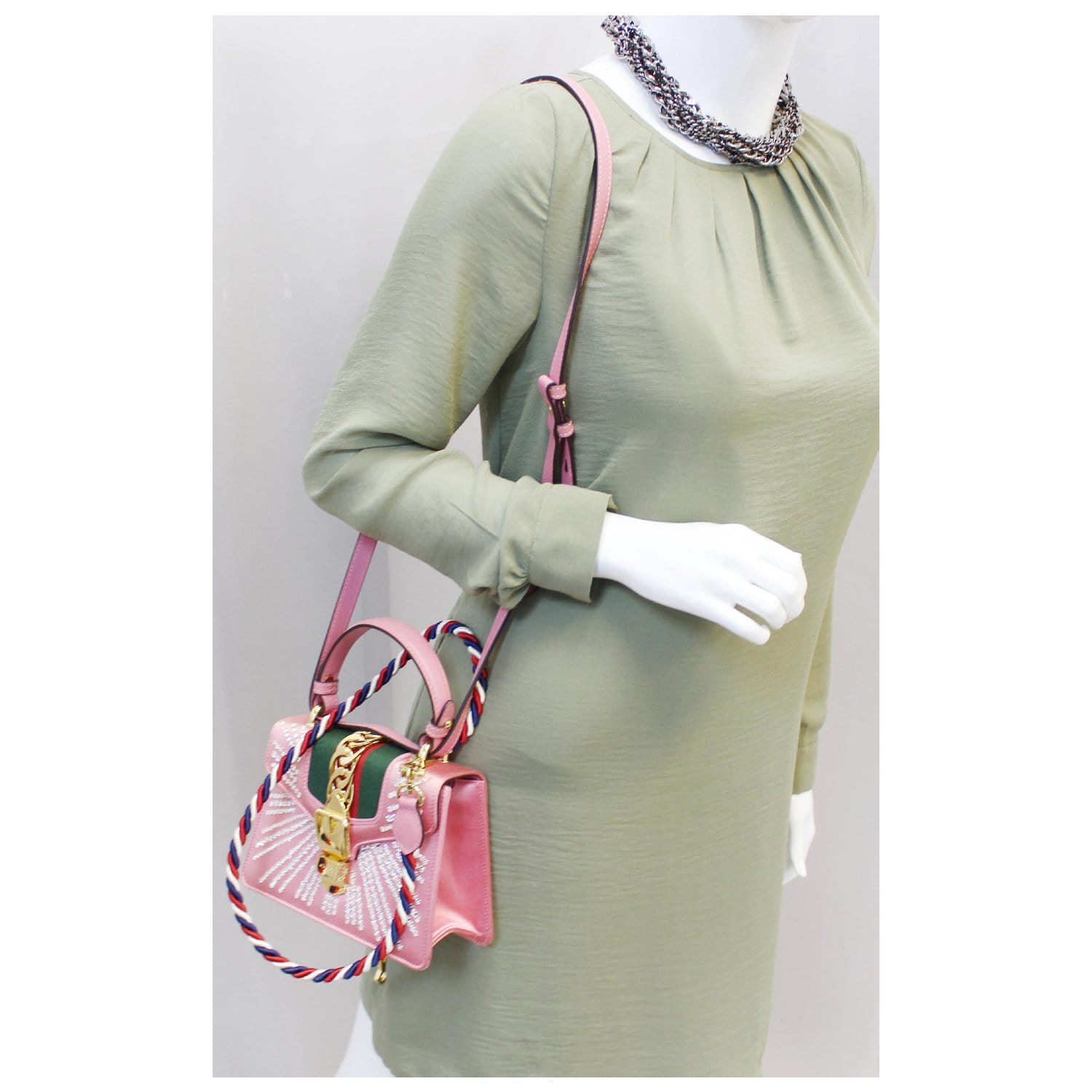 GUCCI Mini Sylvie Satin Crystal Shoulder Bag Peony