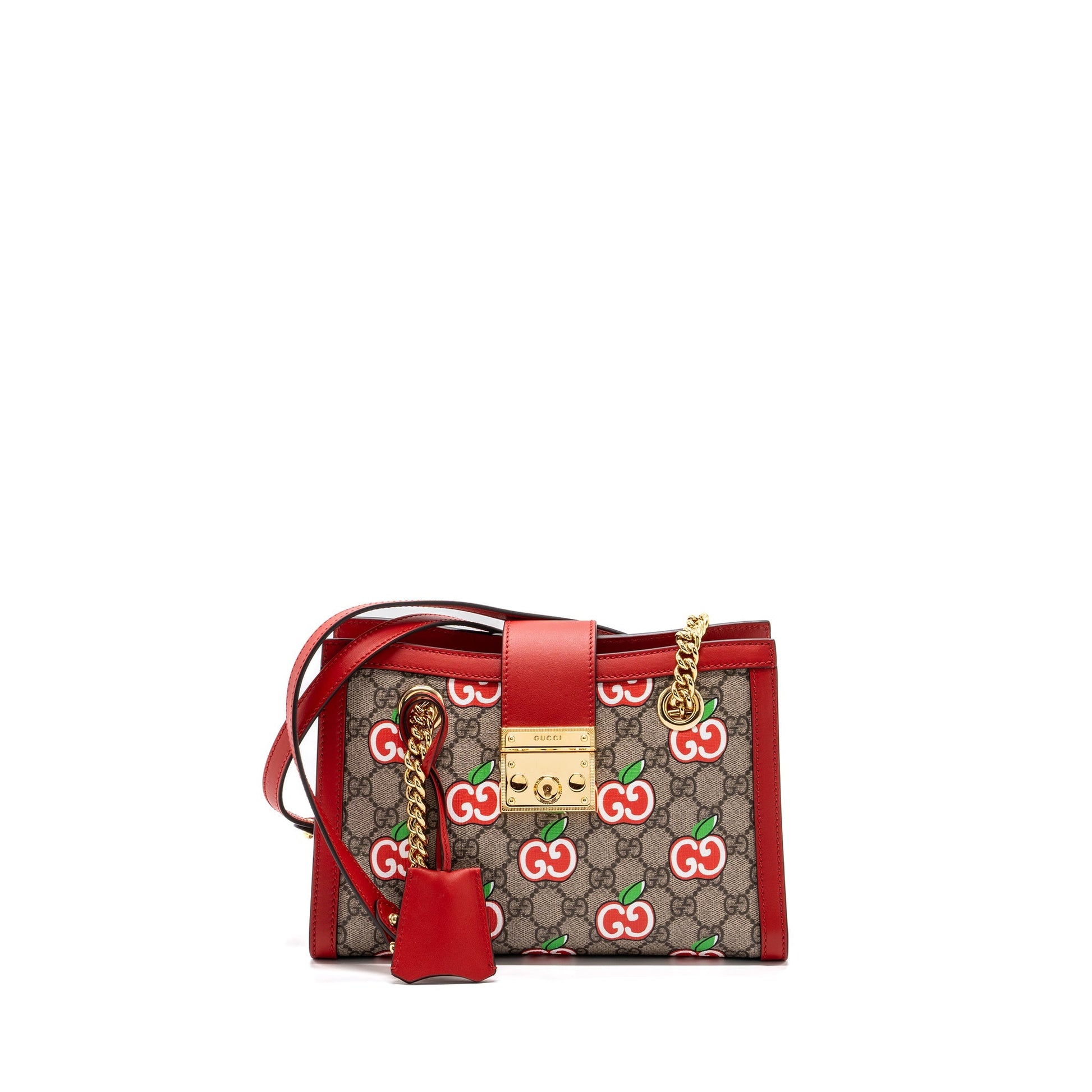 Gucci small Padlock shoulder bag GG supreme canvas red