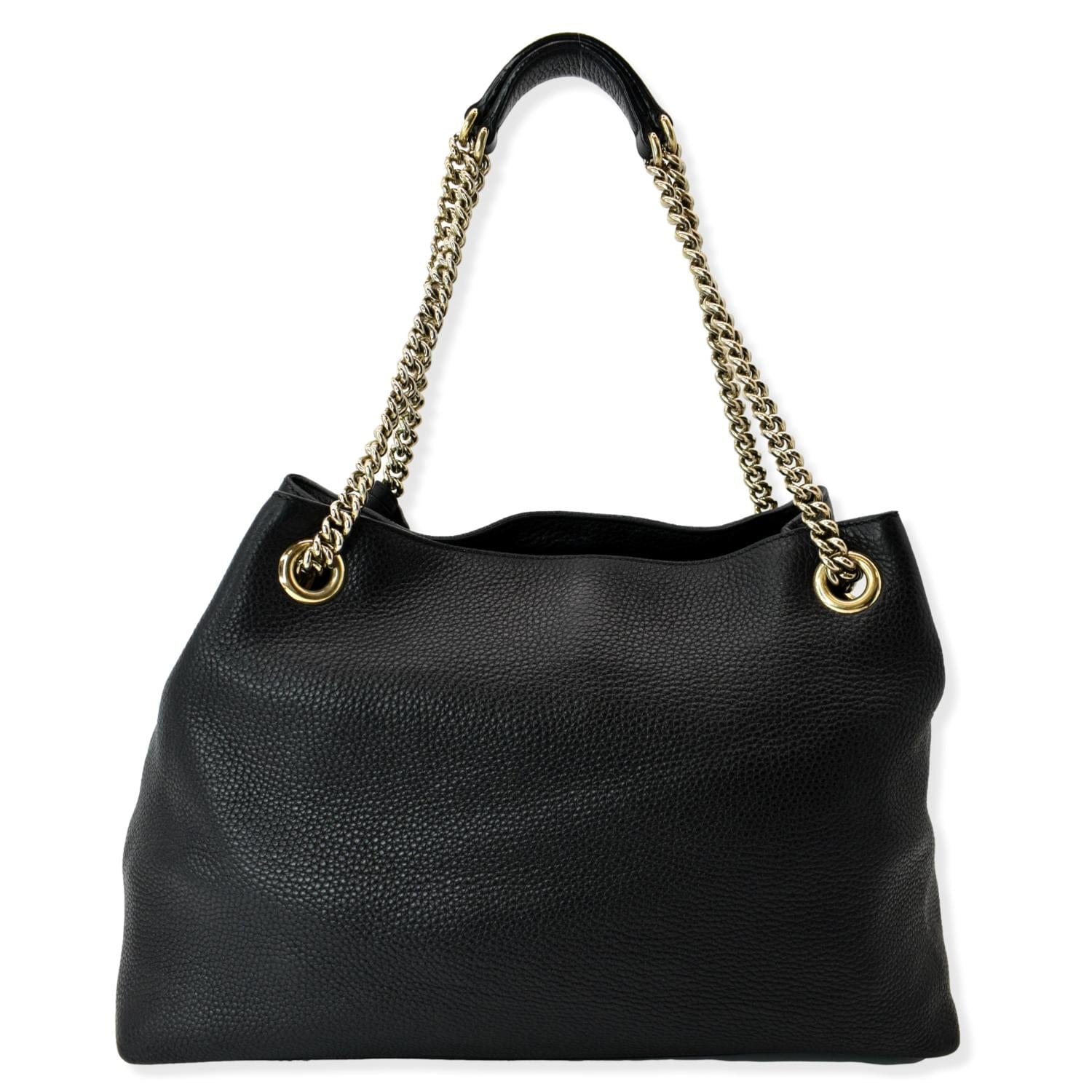 GUCCI Soho Pebbled Leather Chain Shoulder Bag Black 308982