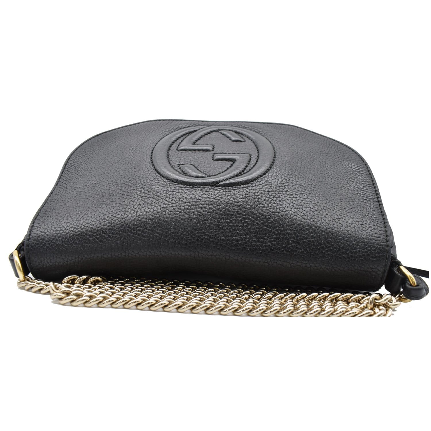 GUCCI Soho Disco GG Flap Leather Chain Crossbody Bag Black 536224