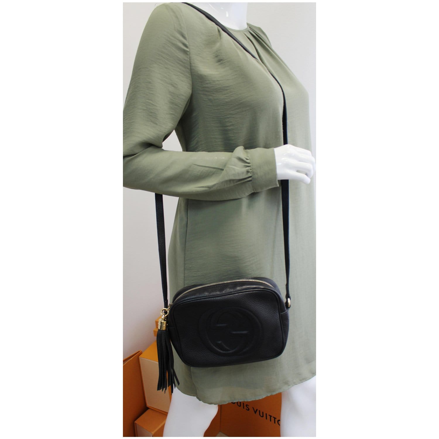 GUCCI Soho Disco Pebbled Leather Small Crossbody Bag Black 308364