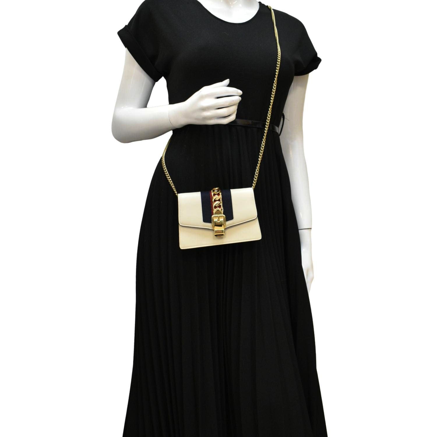 GUCCI Sylvie Super Mini Leather Crossbody Bag White 494646