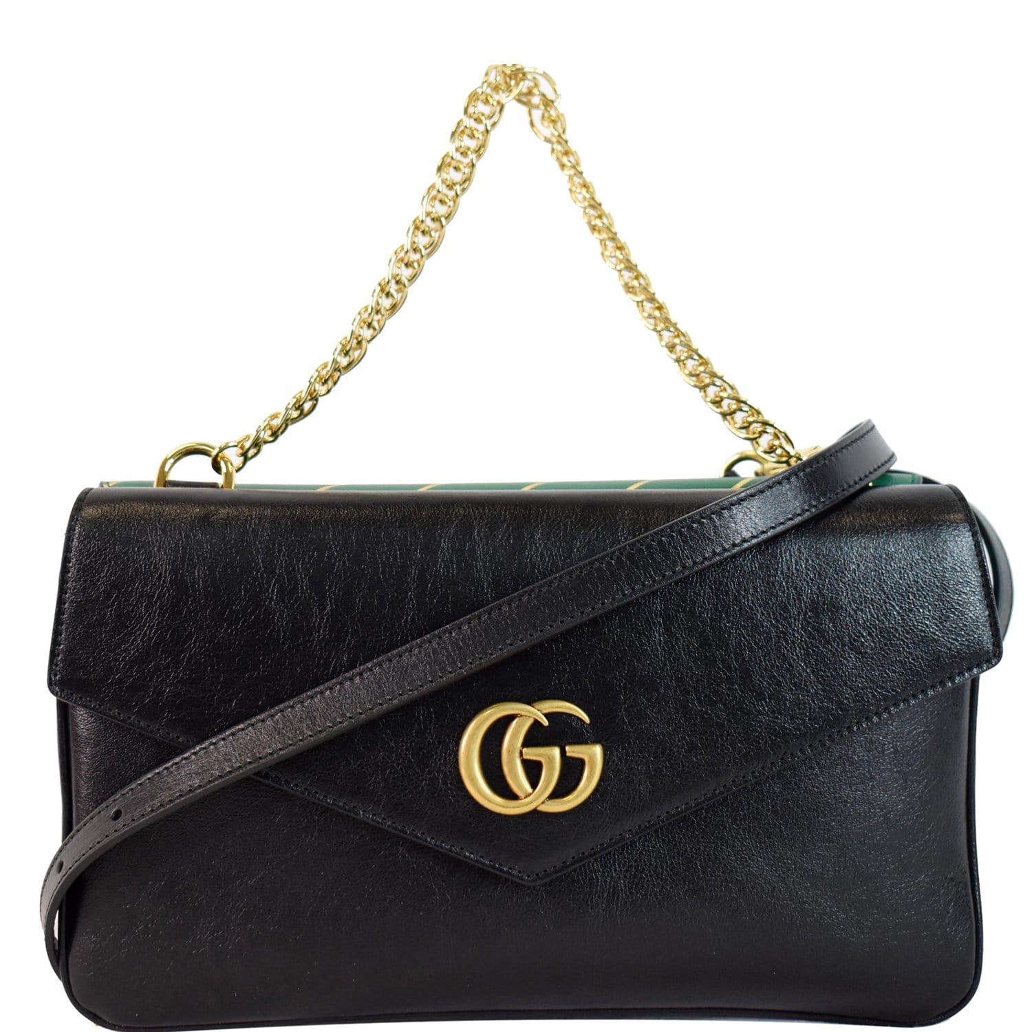GUCCI Thiara Medium Double Smooth Leather Shoulder Bag Green/Black 524822