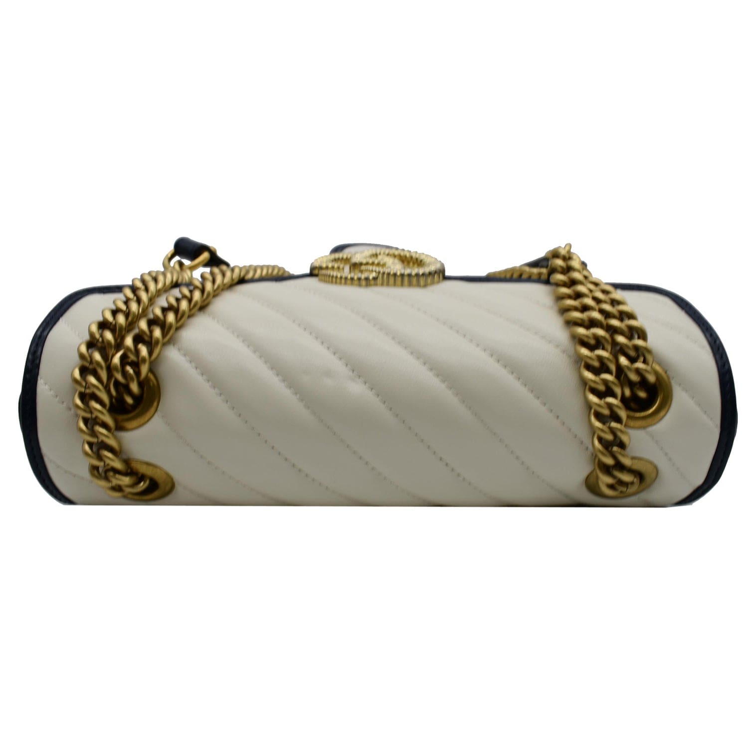 GUCCI Torchon GG Marmont Small Calfskin Matelasse Shoulder Bag White