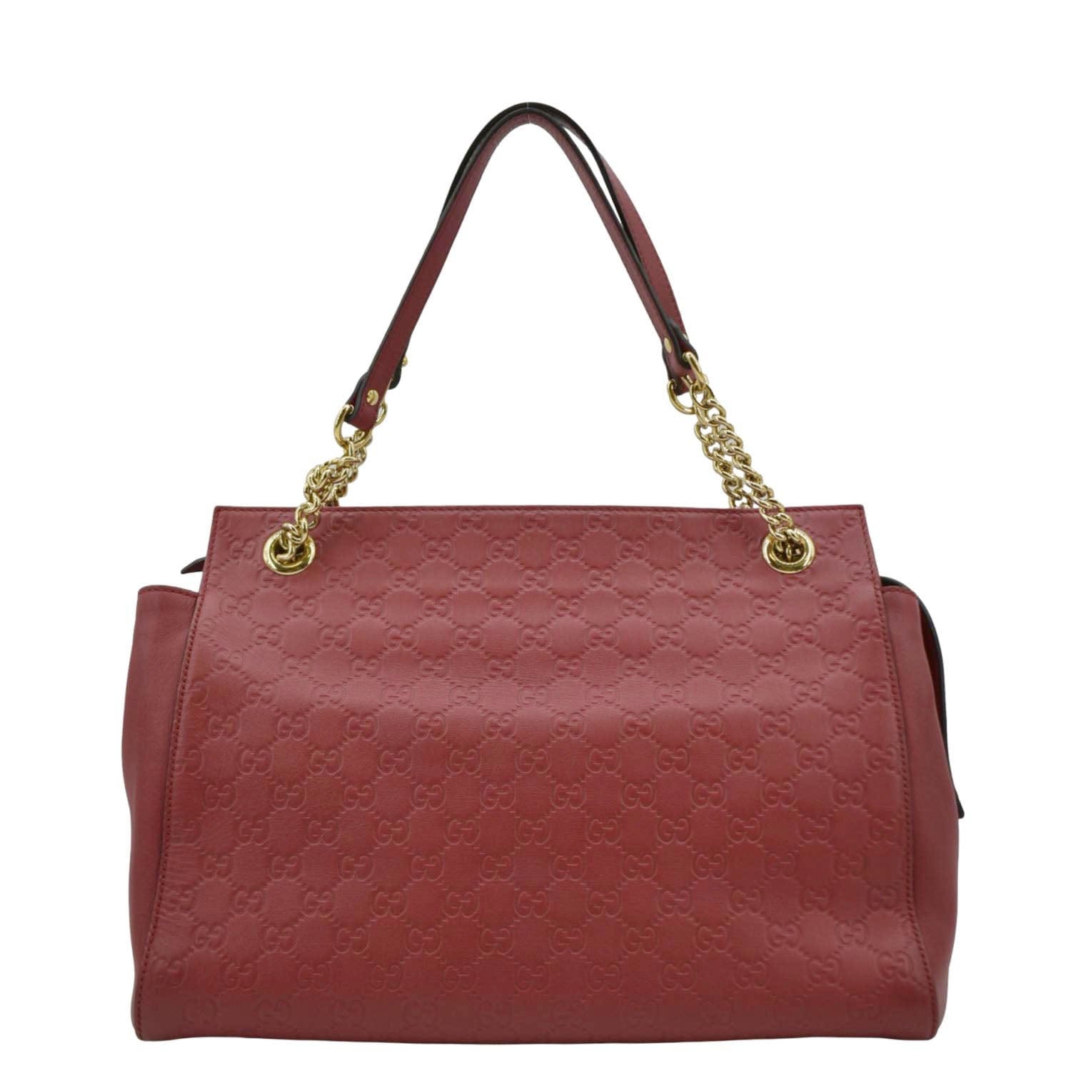 GUCCI Large Soft Signature Leather Chain Shoulder Tote Bag Red 453771