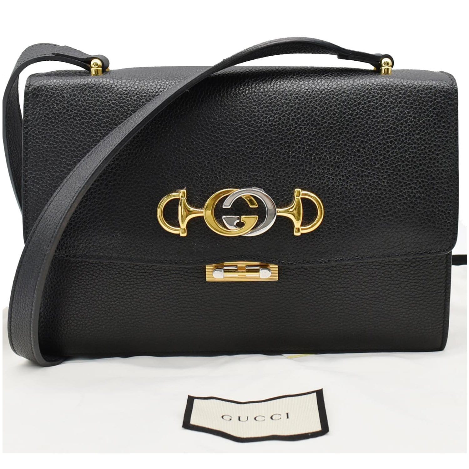 GUCCI Zumi Small Grainy Leather Chain Crossbody Bag Black 576388