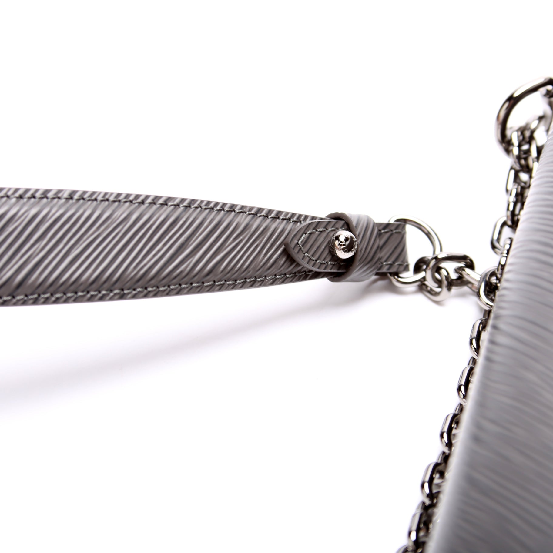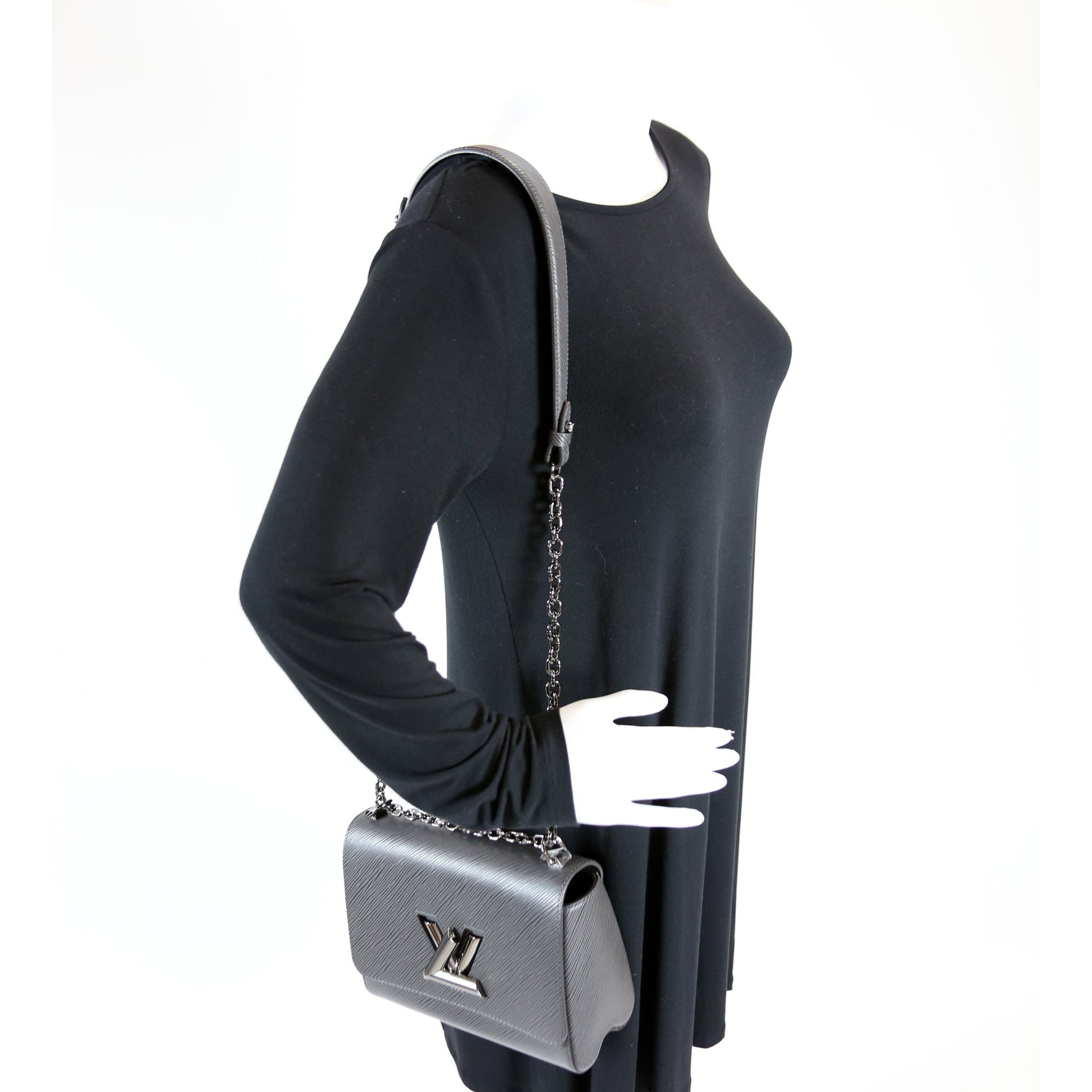This Louis Vuitton Twist MMis eye catching bag. The exterior is in the classic Louis Vuitton Epi leather coated canvas.